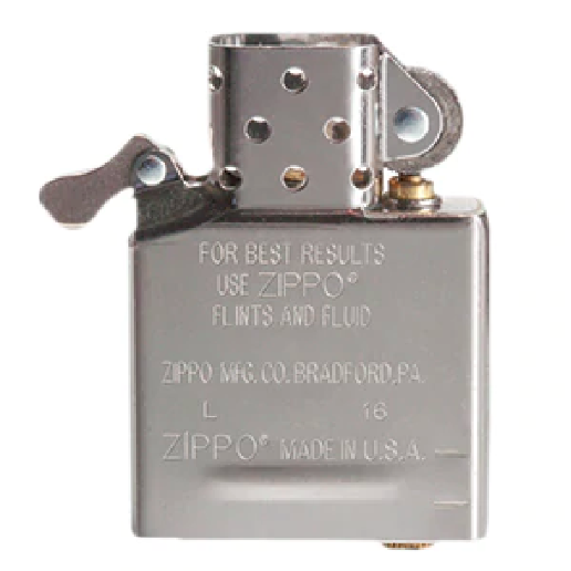 Được làm bằng chất liệu thép không gỉ (Stainless Steel). Ruột tiêu chuẩn với 16 lỗ trên ống khói (8 lỗ mỗi bên). Phù hợp với tất cả các loại vỏ bật lửa Zippo thông thường – không phù hợp với các vỏ mẫu slim hoặc mẫu tái bản. 1935,1941. Có sẵn đá và bấc, chỉ cần gắn vào vỏ Zippo châm xăng dùng ngay.