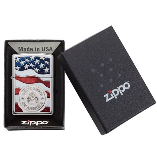 Bạn sẽ thể hiện tình yêu của mình đối với Hoa Kỳ khi sở hữu bật lửa yêu nước này. Quốc kỳ Mỹ trở nên mới lạ và độc đáo khi được đặt trên bật lửa High Polish Chrome. Sản phẩm được đóng gói trong hộp quà tặng. Để đạt hiệu suất tốt nhất, hãy nạp nhiên liệu bật lửa Zippo.
