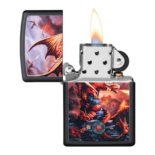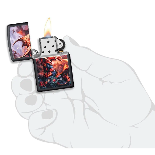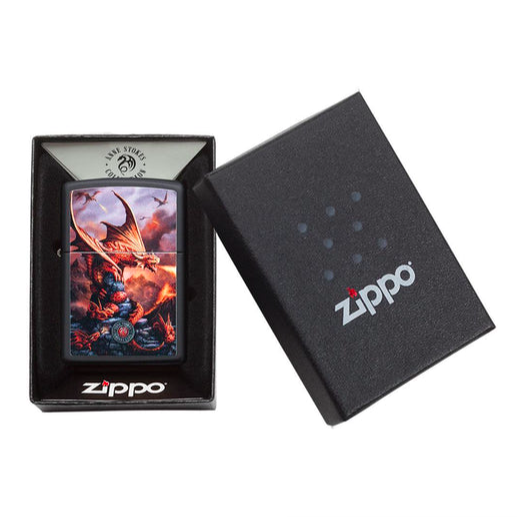 Trong thế giới tưởng tượng với những tác phẩm nghệ thuật phức tạp của Anne Stokes! Con rồng màu đỏ lửa này nằm nghỉ trên đỉnh núi đa sỏi và sẽ không ngừng bảo vệ con non của nó. Thiết kế hung dữ này được tạo màu trên bật lửa mờ màu đen (Black Matte). Được đóng gói trong hộp quà tặng. Để có hiệu suất tối ưu, hãy nạp nhiên liệu bật lửa Zippo.