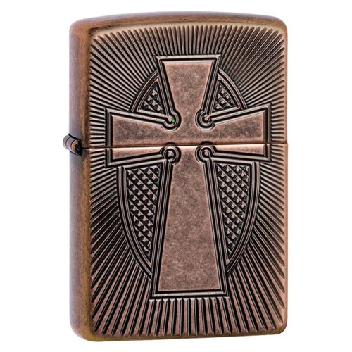 Hãy nhận lấy cây thánh giá riêng của bạn với thiết kế Armor® Antique Copper Cross này. Quy trình khắc sâu của Zippo khắc chính xác các vết cắt có đường viền sâu vào chiếc bật lửa Armor® này để tạo ra cây thánh giá tuyệt vời với các tia sáng phân kỳ chiếu phía sau. Được đóng gói trong một hộp đựng dạng quà tặng. Để tối ưu hiệu suất, hãy dùng nhiên liệu bật lửa của Zippo.