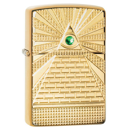 Hình ảnh Mắt Chúa hay còn gọi là mắt thần tỏ ra sự sáng tạo từ trên cao hoặc ý tưởng rằng luôn có ai đó đang theo dõi bạn. Thiết kế này đổ ánh nhìn thần thánh từ một viên pha lê màu xanh được đặt vào một hình chóp đục sâu trên bật lửa Armor® High Polish Brass và cũng có thêm một phần insert mạ vàng. Được đóng gói trong hộp quà tặng. Để có hiệu suất tối ưu, hãy nạp nhiên liệu bật lửa Zippo.