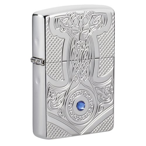 Mjölnir được miêu tả trong thần thoại Norse như một trong những vũ khí đáng sợ và mạnh mẽ nhất tồn tại. Cái búa mạnh mẽ này được nói là có khả năng san bằng những ngọn núi. Được khắc sâu trên một bật lửa Armor® High Polish Chrome là cây búa của thần Viking Thor, với các họa tiết thời Trung Cổ được thêu kỹ lưỡng khắp nơi. Để hoàn thành thiết kế này, một viên pha lê tuyệt đẹp được gắn ở phía dưới trung tâm của thiết kế của cây búa. Được đóng gói trong hộp quà tặng. Để có hiệu suất tối ưu, hãy nạp nhiên liệu bật lửa Zippo.