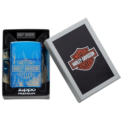 Biểu trưng cổ điển của Harley-Davidson nổi lên từ một ngọn lửa hỏa hoạn trắng nóng trên chiếc bật lửa mạ vàng ánh xanh. Những ngọn lửa nhảy múa bao trọn toàn bộ chiếc bật lửa nhờ vào quá trình ảnh 360° Photo Image của chúng tôi. Được đóng gói trong hộp quà tặng. Để đạt hiệu suất tối ưu, hãy sử dụng nhiên liệu bật lửa Zippo.