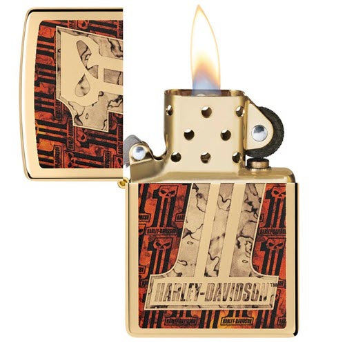 Xuất hiện lần đầu tại Giải vô địch Quốc gia AMA năm 1969, biểu trưng hình đầu lâu Harley-Davidson nổi bật trên bề mặt của chiếc bật lửa mạ vàng bóng. Quá trình kết hợp của chúng tôi làm nổi bật những màu sắc phong phú và yếu tố kim loại của thiết kế, tạo thành một sự kết hợp thực sự ấn tượng. Được đóng gói trong hộp quà tặng. Để đạt hiệu suất tối ưu, hãy sử dụng nhiên liệu bật lửa Zippo.