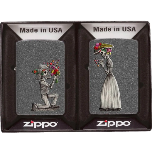Cái chết không thể ngăn cản tình yêu đích thực. Bộ hai chiếc bật lửa chống gió Iron Stone này lưu giữ một câu chuyện tình yêu lãng mạn. Được đóng gói trong hộp quà tặng. Để có hiệu suất tối ưu, hãy nạp nhiên liệu bật lửa Zippo.