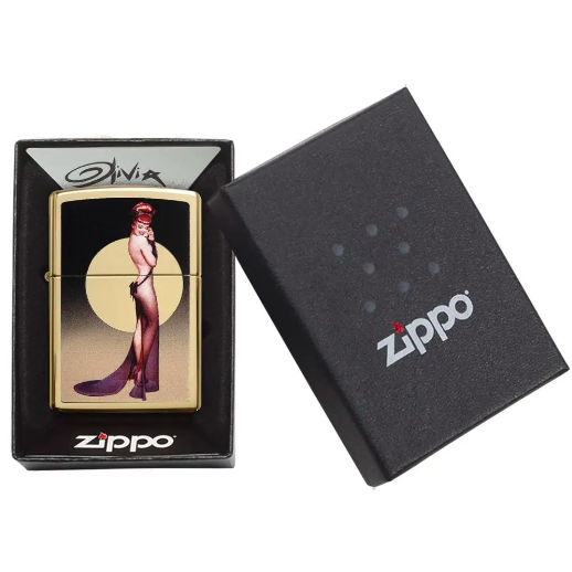 Quyến rũ và sang trọng. Tác phẩm nghệ thuật gợi cảm của Olivia De Berardinis được thể hiện trên bề mặt chiếc bật lửa High Polish Brass. Bề mặt màu đồng rực rỡ trông càng đẹp say đắm khi kết hợp với sắc tím trên trang phục của cô người mẫu đầy quyến rũ. Được đóng gói trong một hộp quà tặng và kèm theo hướng dẫn sử dụng. Để có hiệu suất tối ưu, hãy đổ đầy nhiên liệu bật lửa Zippo.