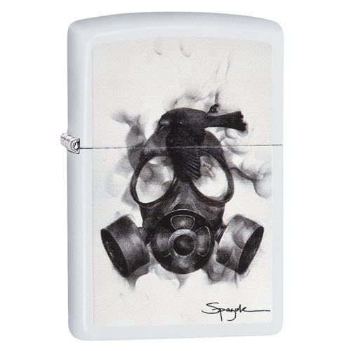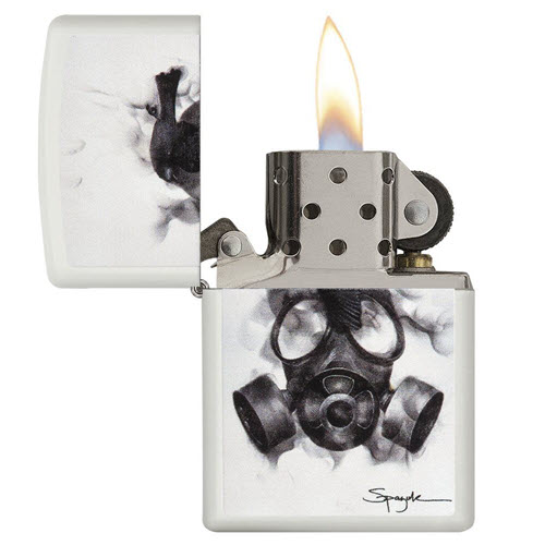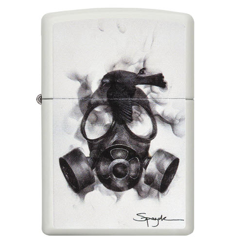 Steven Spazuk, một người sở hữu bật lửa Zippo từ lâu, là một nghệ sĩ người Canada chuyên về kỹ thuật fumage, sử dụng lửa để tạo ra những bức tranh siêu thực, nhưng mang trong đó một cảm giác mơ màng. Năm nay, Zippo đã hợp tác với Spazuk để cung cấp một số bản tái hiện tuyệt vời của những tác phẩm nổi bật nhất của anh trên bề mặt của một chiếc bật lửa chống gió màu trắng matte. Mẫu này có hình một con chim đen đậy trên một chiếc mặt nạ khí đục. Sản phẩm đi kèm trong hộp quà tặng. Để đạt hiệu suất tối ưu, hãy sử dụng nhiên liệu bật lửa Zippo.