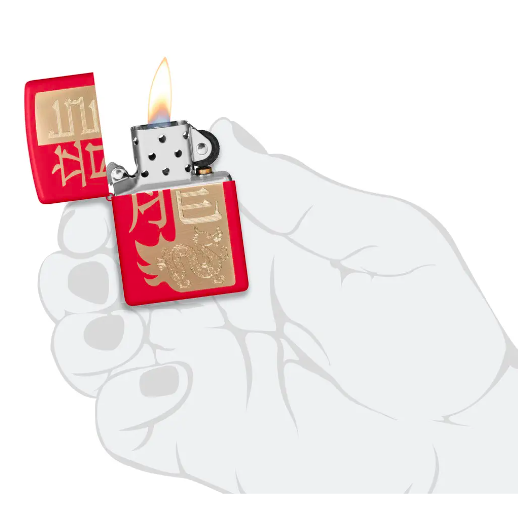 Chào đón Năm Con Rồng năm 2024 với chiếc bật lửa mờ màu Đỏ nổi bật này. Biểu tượng cho sức mạnh, danh dự và thành công, con rồng mạnh mẽ xuất hiện dưới hình hiện đại của nó trong ký tự Trung Quốc truyền thống, với tông màu đồng sang trọng bằng cả quá trình Auto và Laser Engrave của chúng tôi và chắc chắn sẽ mang lại sự tự tin và sự bảo vệ suốt cả năm. Được đóng gói trong hộp quà tặng. Để có hiệu suất tối ưu, hãy nạp nhiên liệu bật lửa Zippo.