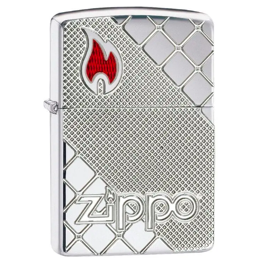 Đây Armor ® Polish Chrome hiển thị sáng hơn một thiết kế chip poker thanh lịch. Chip poker được tạo ra bằng cách sử dụng quy trình khắc sâu trong khi ngọn lửa Zippo tập trung vào chip mang lại màu đỏ cho thiết kế bằng quy trình inlay epoxy.