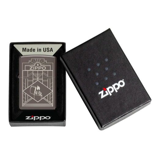 Thiết kế sang trọng được khắc bằng laser lên chiếc bật lửa Black Ice này bao gồm biểu tượng Zippo đặt ở trên một bức tranh kiểu Art Deco, trong khi một hình ảnh thu nhỏ của một chiếc bật lửa đang bốc cháy với ngọn lửa sẽ không bao giờ tắt. Được đóng gói trong hộp quà tặng. Để có hiệu suất tối ưu, hãy nạp nhiên liệu bật lửa Zippo.