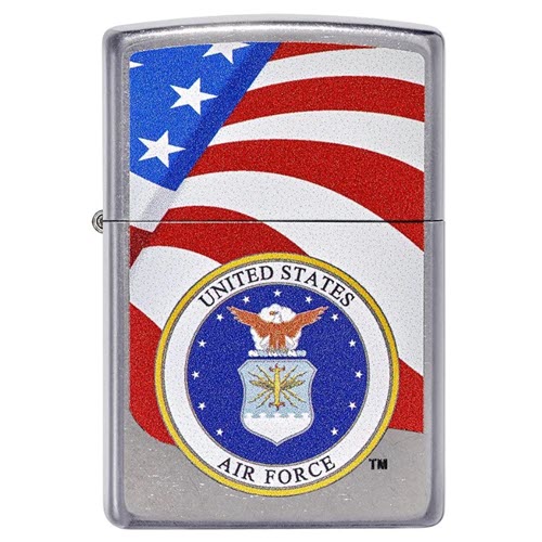 Cho dù bạn đang tri ân hay thể hiện lòng yêu nước của mình, chiếc bật lửa Zippo đồng thau, nền mạ Street Chrome™ của lực lượng Không quân Hoa Kỳ này là dành cho bạn. Huy hiệu của lực lượng Không quân Hoa Kỳ™ là hình ảnh màu ở trung tâm của thiết kế này, kèm theo hình ảnh lá Cờ Hoa Kỳ đang bay phất phới trên nền chiếc bật lửa.