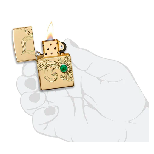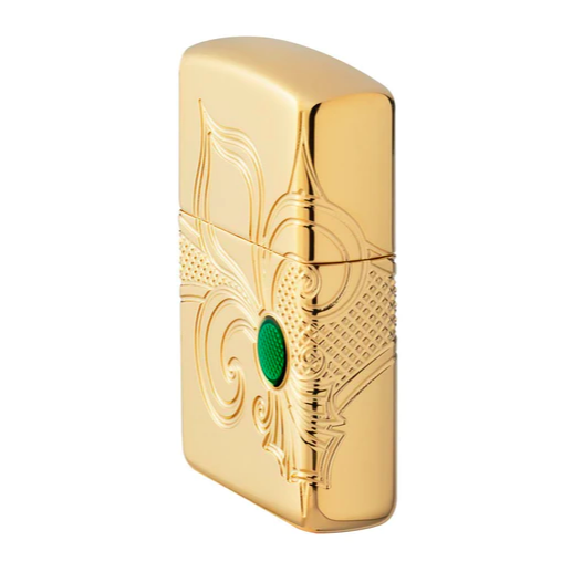 Biểu tượng hoa Lily, Fleur-De-Lis, tượng trưng cho sự sống, ánh sáng và hoàn hảo. Dựa trên một bông hoa lily truyền thống, biểu tượng này đã được khắc xung quanh một cây bật lửa bằng mạ vàng bóng cao cấp bằng quy trình MultiCut. Vòng tròn màu xanh ở giữa bông hoa mang đến một điểm nhấn màu sắc cho thiết kế bằng phương pháp inlay epoxy. Bao bì cao cấp giúp tăng khả năng quan sát các chi tiết thiết kế bằng quy trình MultiCut, khiến thiết kế cao cấp này nổi bật trong đám đông. Để đạt hiệu suất tối ưu, hãy nạp bật lửa Zippo bằng nhiên liệu bật lửa Zippo.
