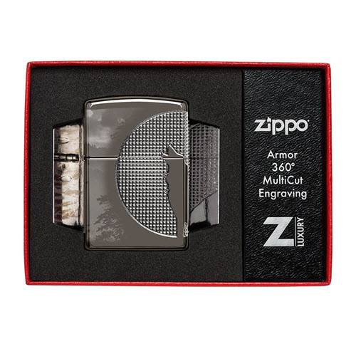 Hoang dã đang kêu gọi, bạn có thể nghe thấy tiếng kêu của nó không? Được trình bày trên bật lửa Armor® Black Ice®, có mặt trăng, được điền bằng quy trình MultiCut, tạo ra một thiết kế có cấu trúc, với hình bóng của một con sói kêu giữa trung tâm. Bao quanh mặt trăng là hình ảnh thực tế của rừng và cây cối, được thể hiện bằng quy trình Photo Image 360°, mang đến cuộc sống. Được đóng gói trong hộp quà tặng. Để có hiệu suất tối ưu, hãy nạp nhiên liệu bật lửa Zippo.
