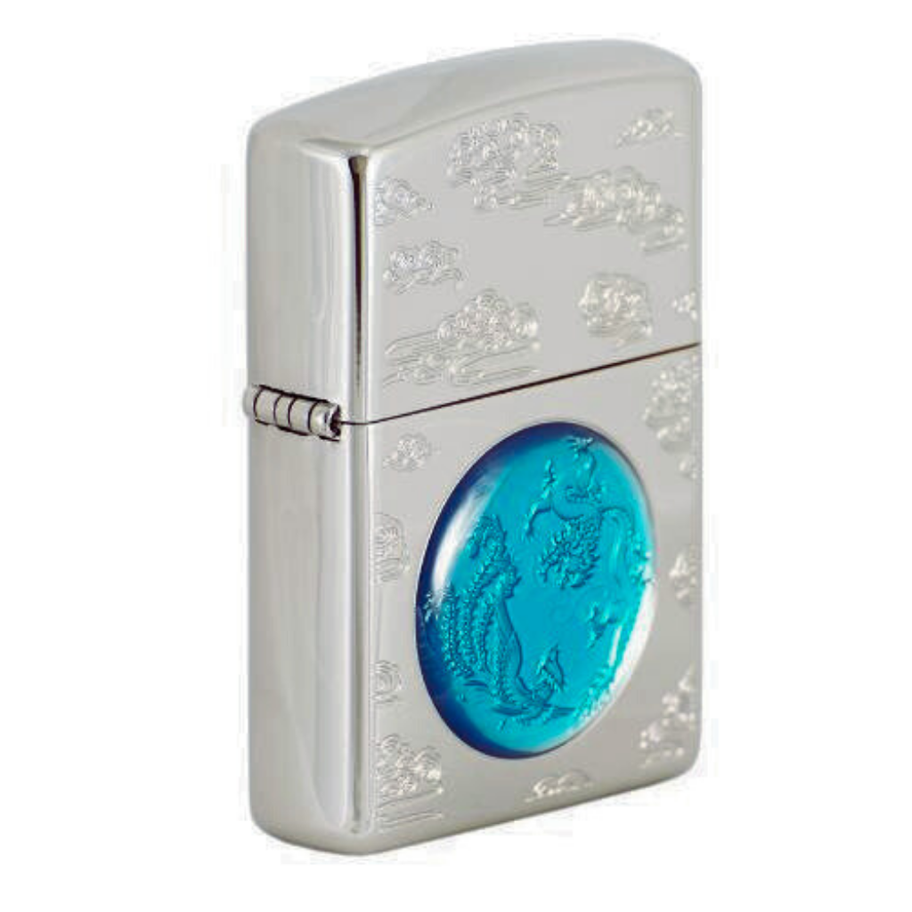 – Zippo đã sử dụng các công nghệ tinh xảo để khắc họa hình ảnh Rồng Phượng và những đám mây ở mặt trước chiếc bật lửa Zipp mạ Niken và có độ bóng cao