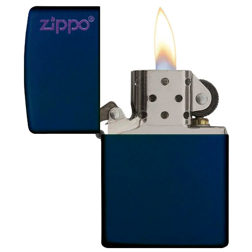 Chất liệu vỏ đồng thau, nền sơn tĩnh điện màu xanh Navy và in logo Zippo cổ điển. Các mẫu bật lửa sơn matte được tạo ra với một lớp sơn tĩnh điện được áp dụng tính điện cho vỏ đồng thau. Mẫu sơn matte đem lại cho bật lửa một kết cấu hoàn hảo, không hiển thị dấu vân tay, không trầy xước nhiều như mạ crôm và đồng thau. Có nhiều màu sắc để lựa chọn một chiếc bật lửa hàng ngày tuyệt vời.