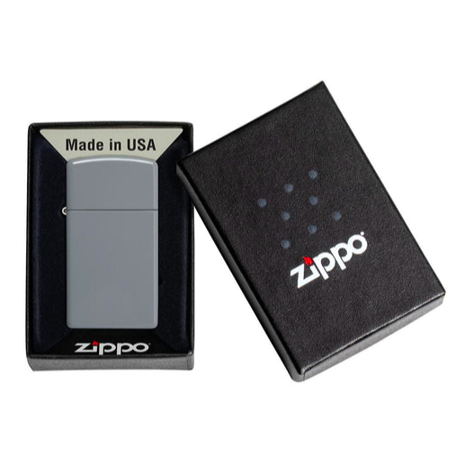 Từ bộ lớp sơn đầu tiên của chúng tôi, Brushed Brass, đến các sáng tạo mới nhất - Flat Colors, Zippo cung cấp một loạt màu sắc và tùy chọn hoàn thiện cho các vỏ bật lửa chống gió. Mẫu Flat Slim® màu mới là thiết kế mới nhất được thêm vào bộ sưu tập các mẫu cơ bản đa dạng của chúng tôi. Với chỉ một chút độ bóng, mẫu Slim® Flat Grey mới này mang lại sự tươi mát trong cách sắp xếp màu sắc. Được đóng gói trong hộp quà tặng. Để đạt hiệu suất tối ưu, hãy sạc bằng nhiên liệu bật lửa Zippo.