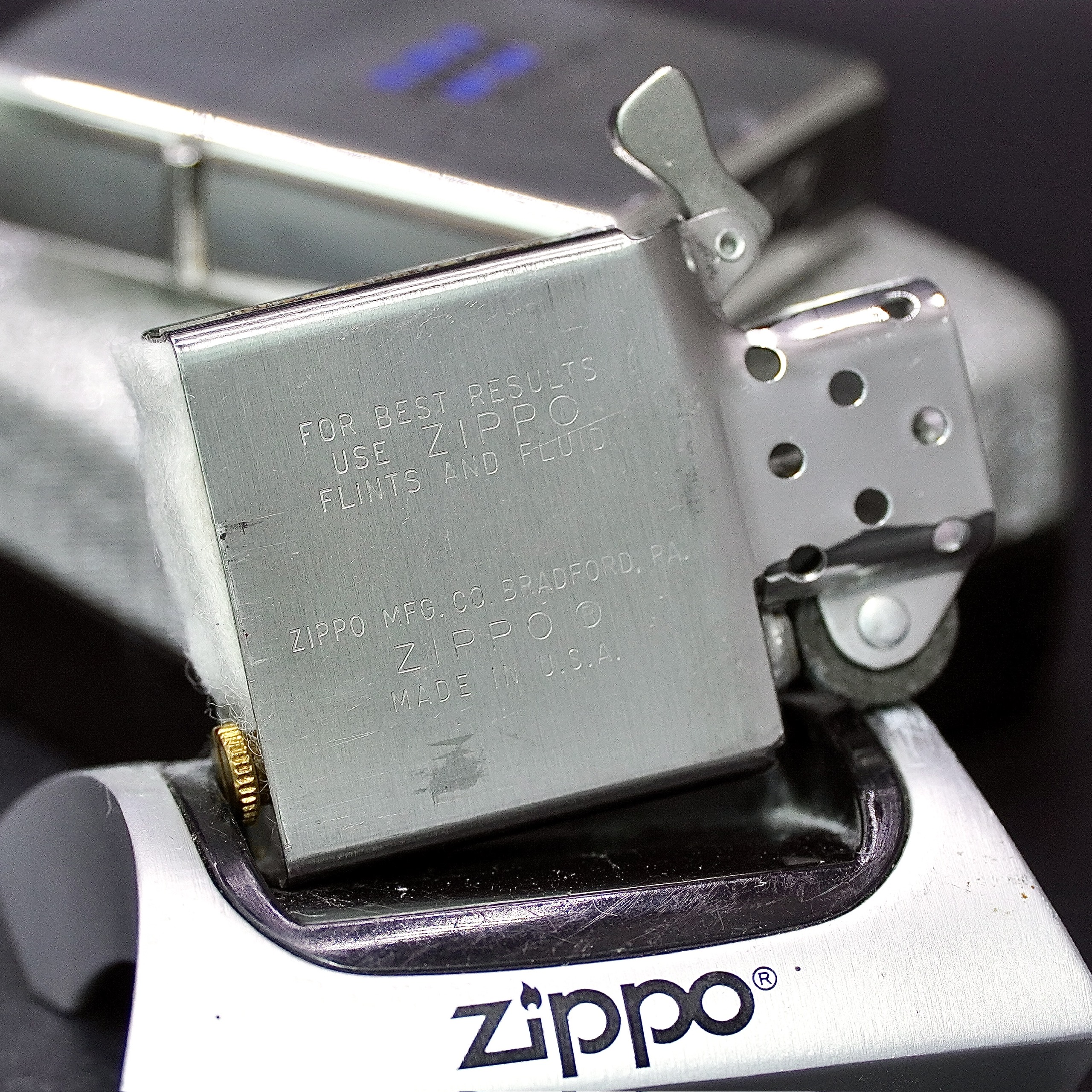 • Có những chiếc bật lửa để sử dụng. Và có những chiếc bật lửa để giữ lại cả một thời kỳ lịch sử. • Chiếc Zippo Bạc Nguyên Khối 1970s này thuộc dòng sản xuất thập niên 70 – thời kỳ vàng son của Zippo Manufacturing Company. • Chất liệu: Solid Silver (Bạc nguyên khối)