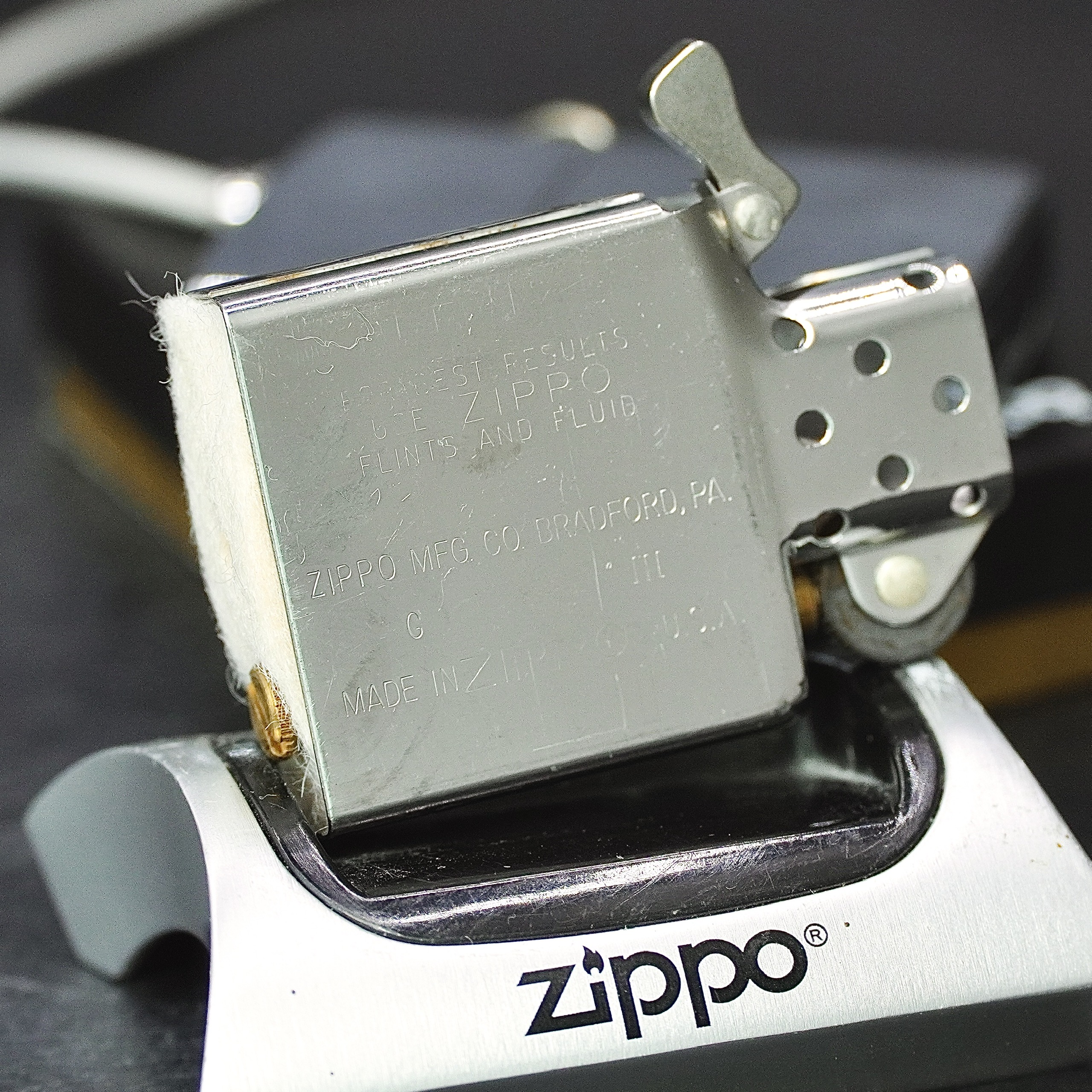 - Thiết kế Zippo nguyên bản , Zippo xưa hoạt động rất tốt. nên sử dụng khăn mềm để lau bề mặt