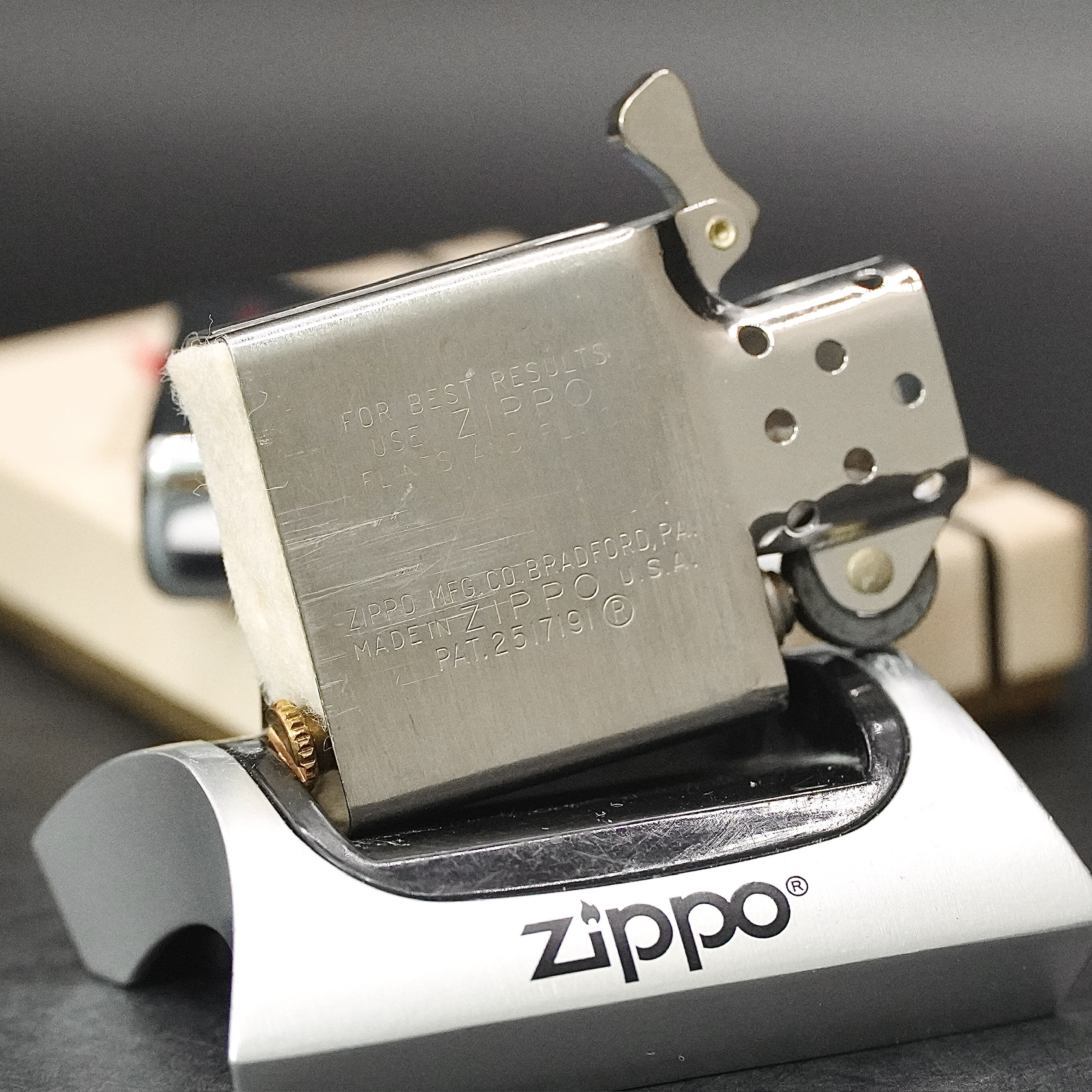 - Thiết kế Zippo nguyên bản , Zippo xưa hoạt động rất tốt. nên sử dụng khăn mềm để lau bề mặt