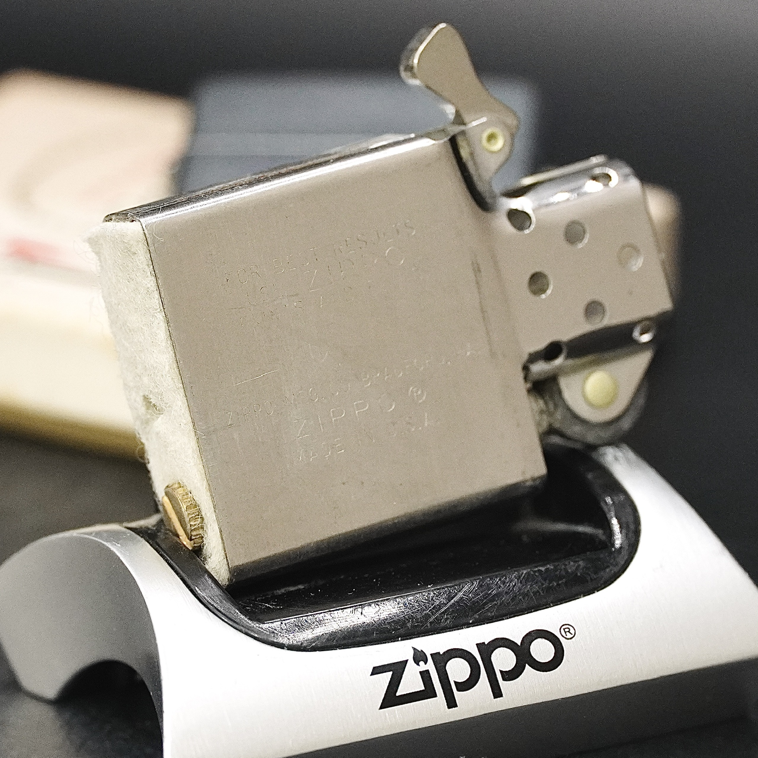 - Thiết kế Zippo nguyên bản , Zippo xưa hoạt động rất tốt. nên sử dụng khăn mềm để lau bề mặt