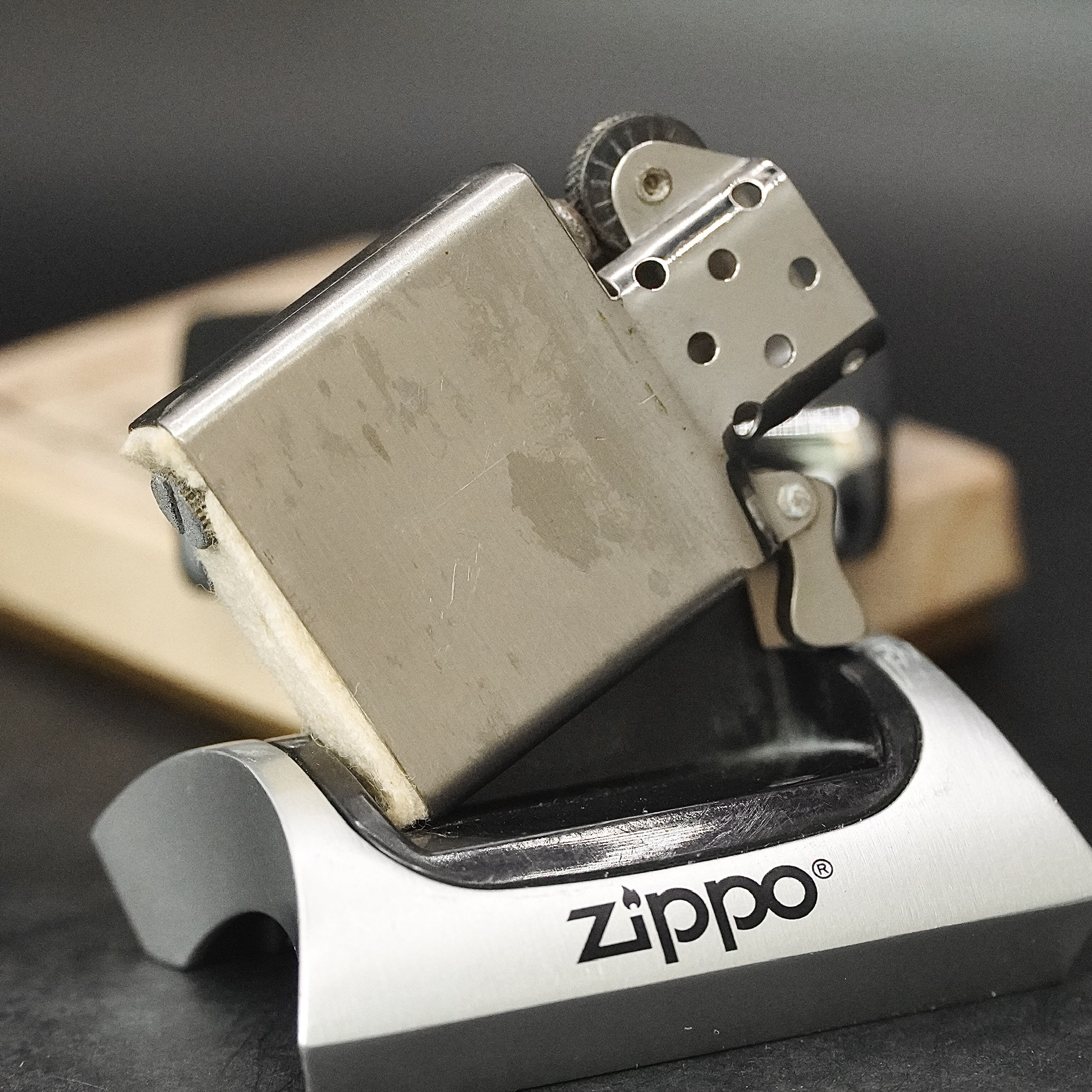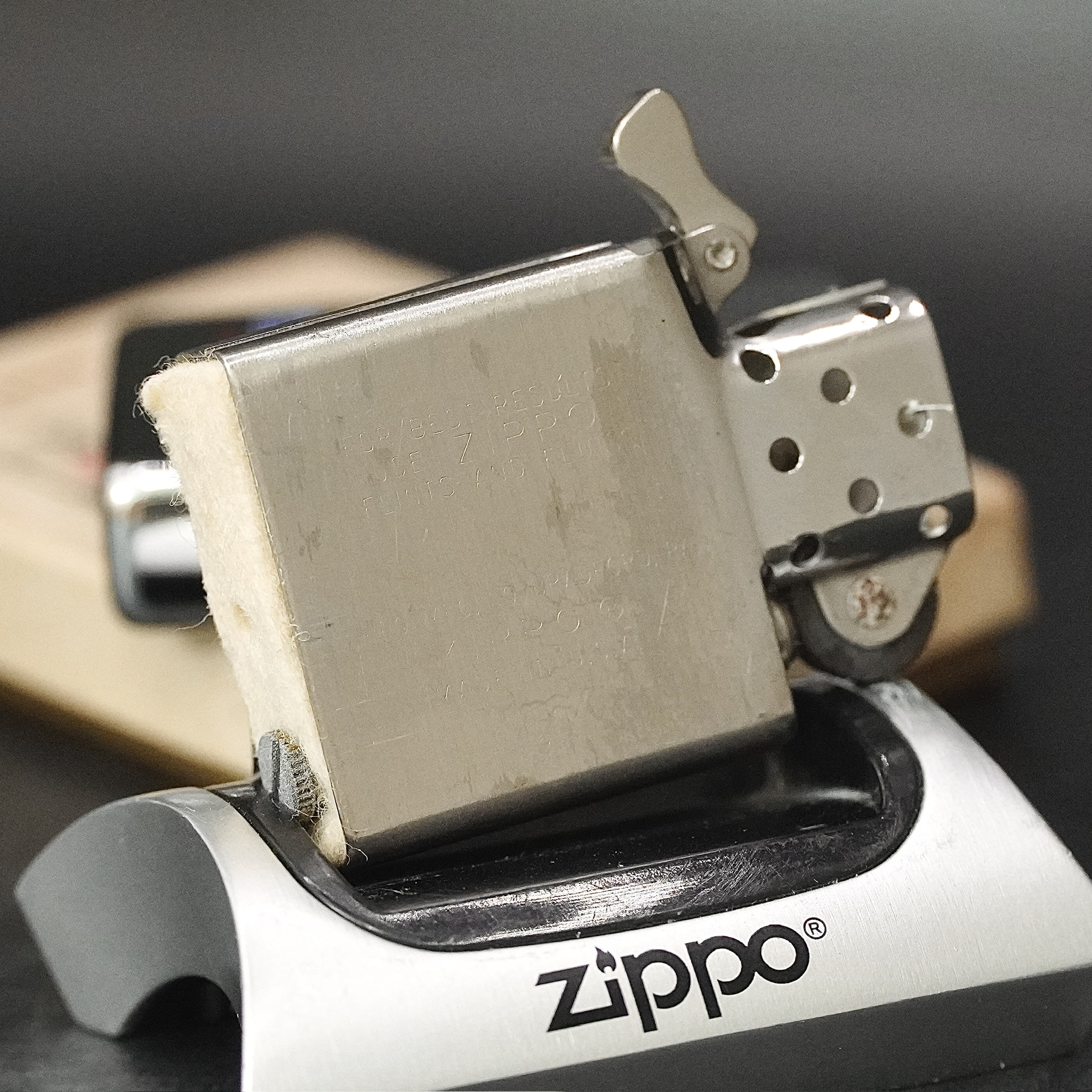- Thiết kế Zippo nguyên bản , Zippo xưa hoạt động rất tốt. nên sử dụng khăn mềm để lau bề mặt