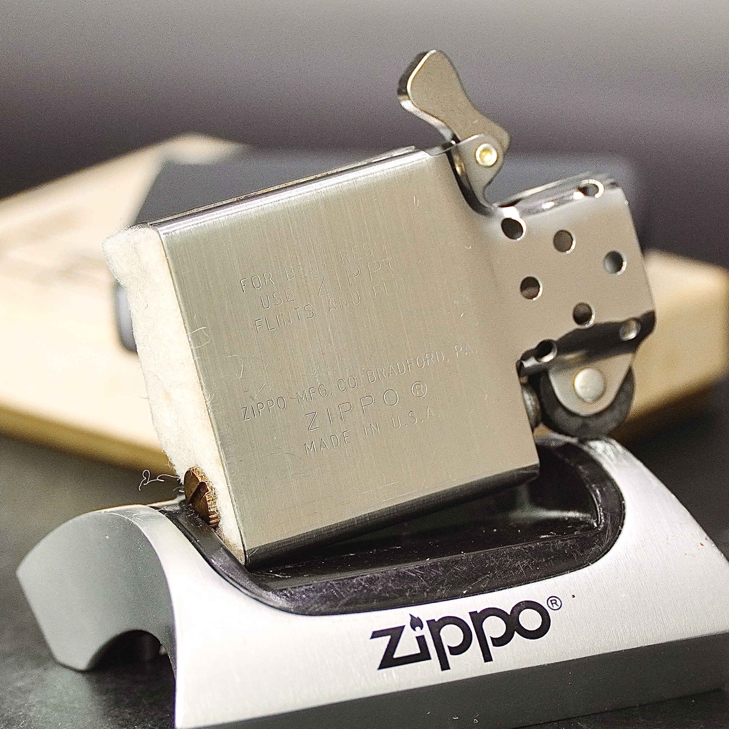 - Thiết kế Zippo nguyên bản , Zippo xưa hoạt động rất tốt. nên sử dụng khăn mềm để lau bề mặt