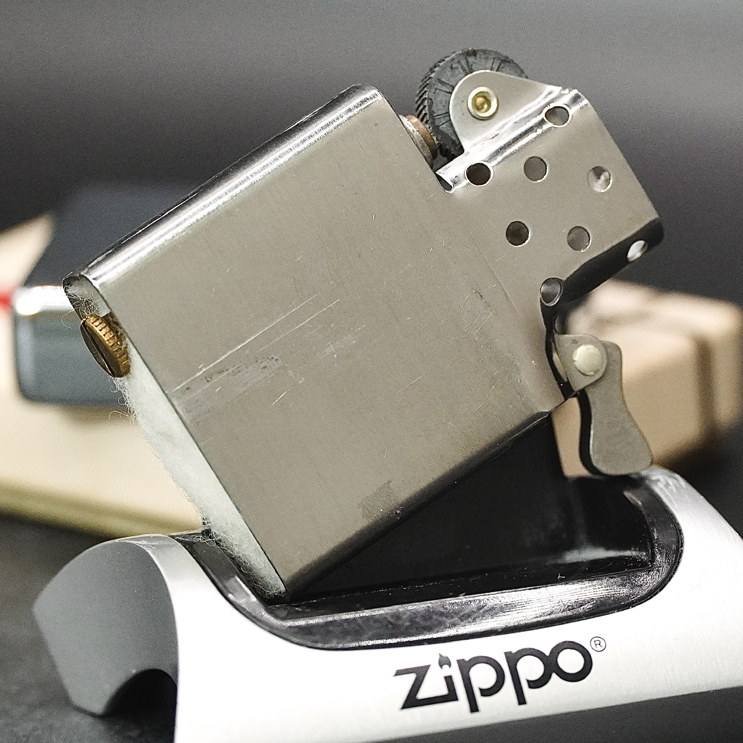 - Thiết kế Zippo nguyên bản , Zippo xưa hoạt động rất tốt. nên sử dụng khăn mềm để lau bề mặt