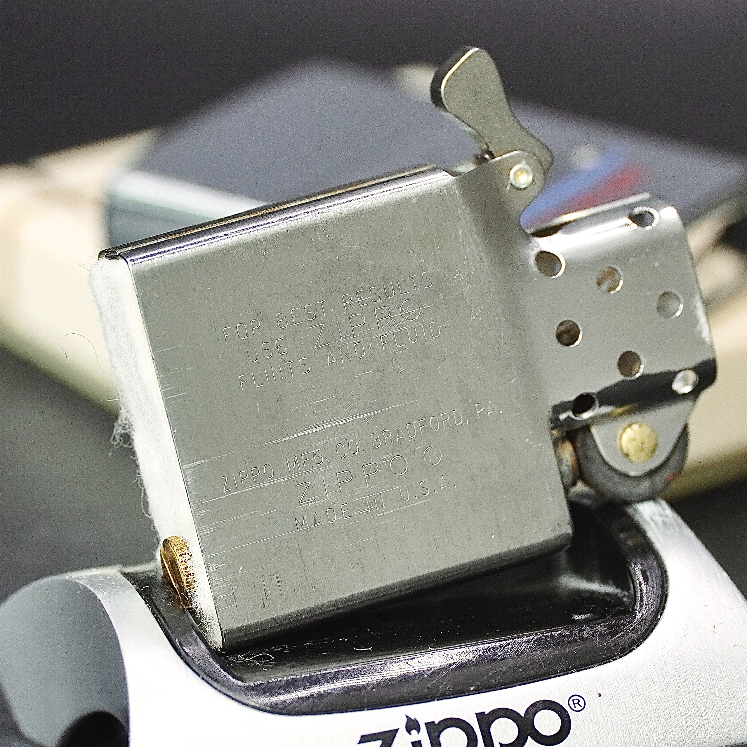 - Thiết kế Zippo nguyên bản , Zippo xưa hoạt động rất tốt. nên sử dụng khăn mềm để lau bề mặt