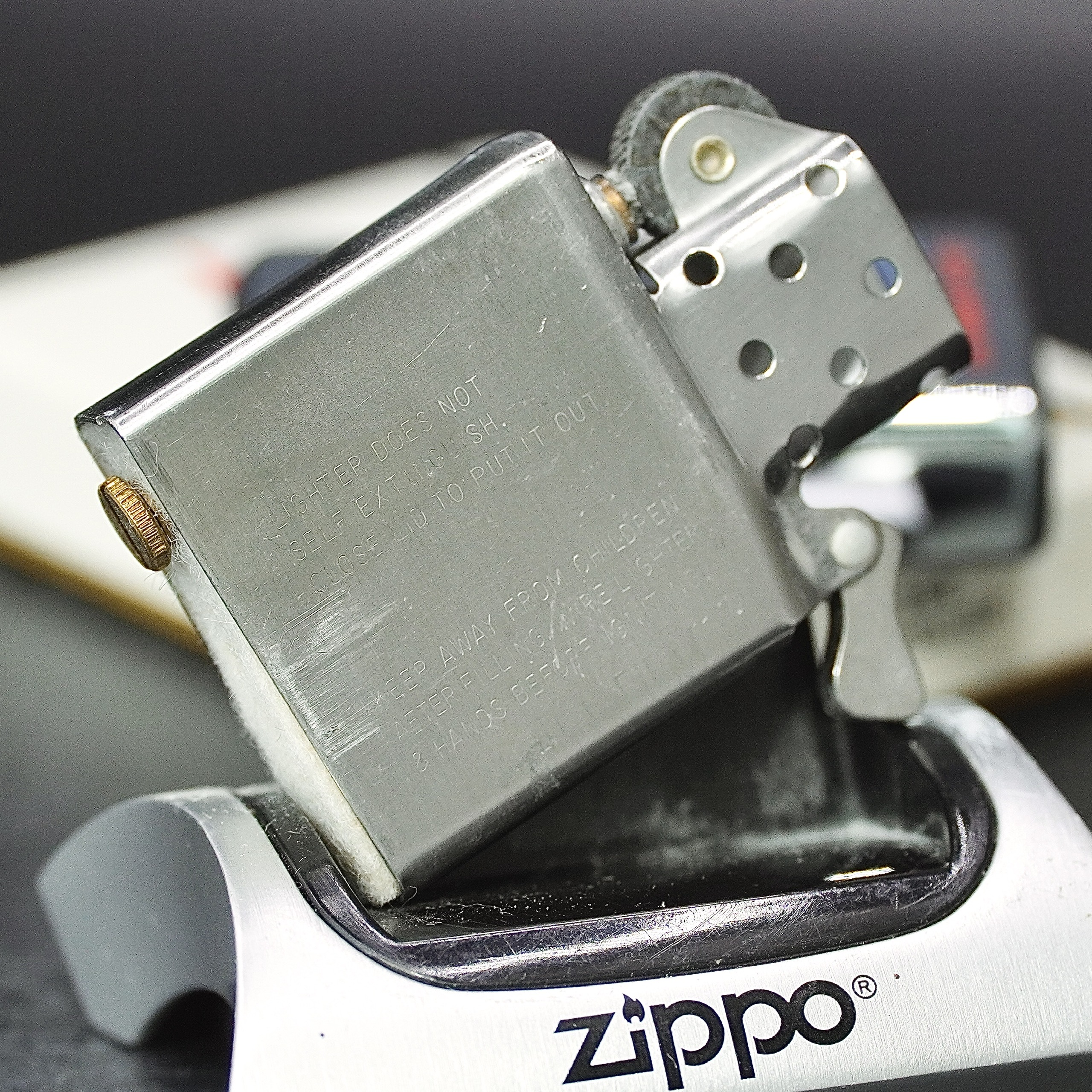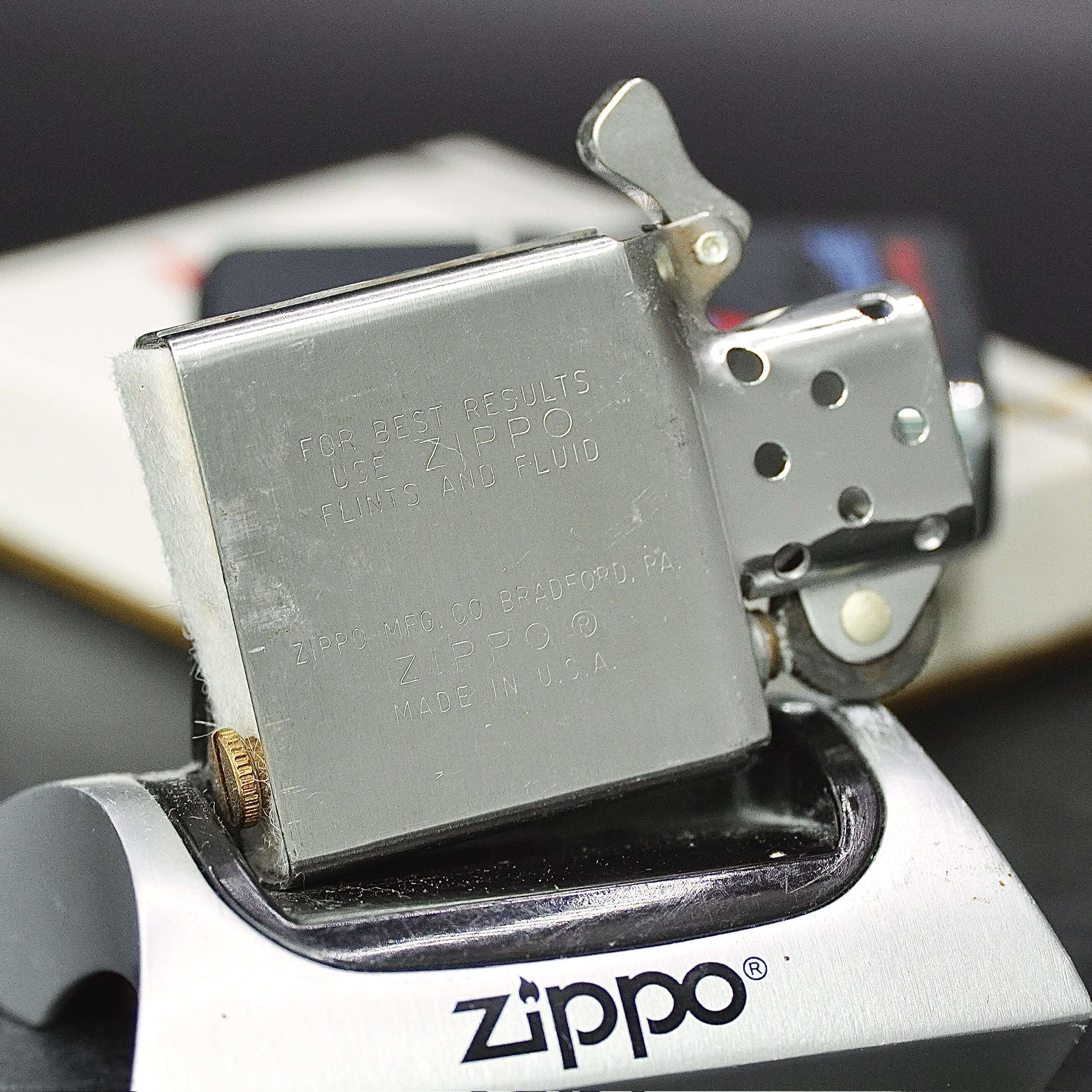 - Thiết kế Zippo nguyên bản , Zippo xưa hoạt động rất tốt. nên sử dụng khăn mềm để lau bề mặt