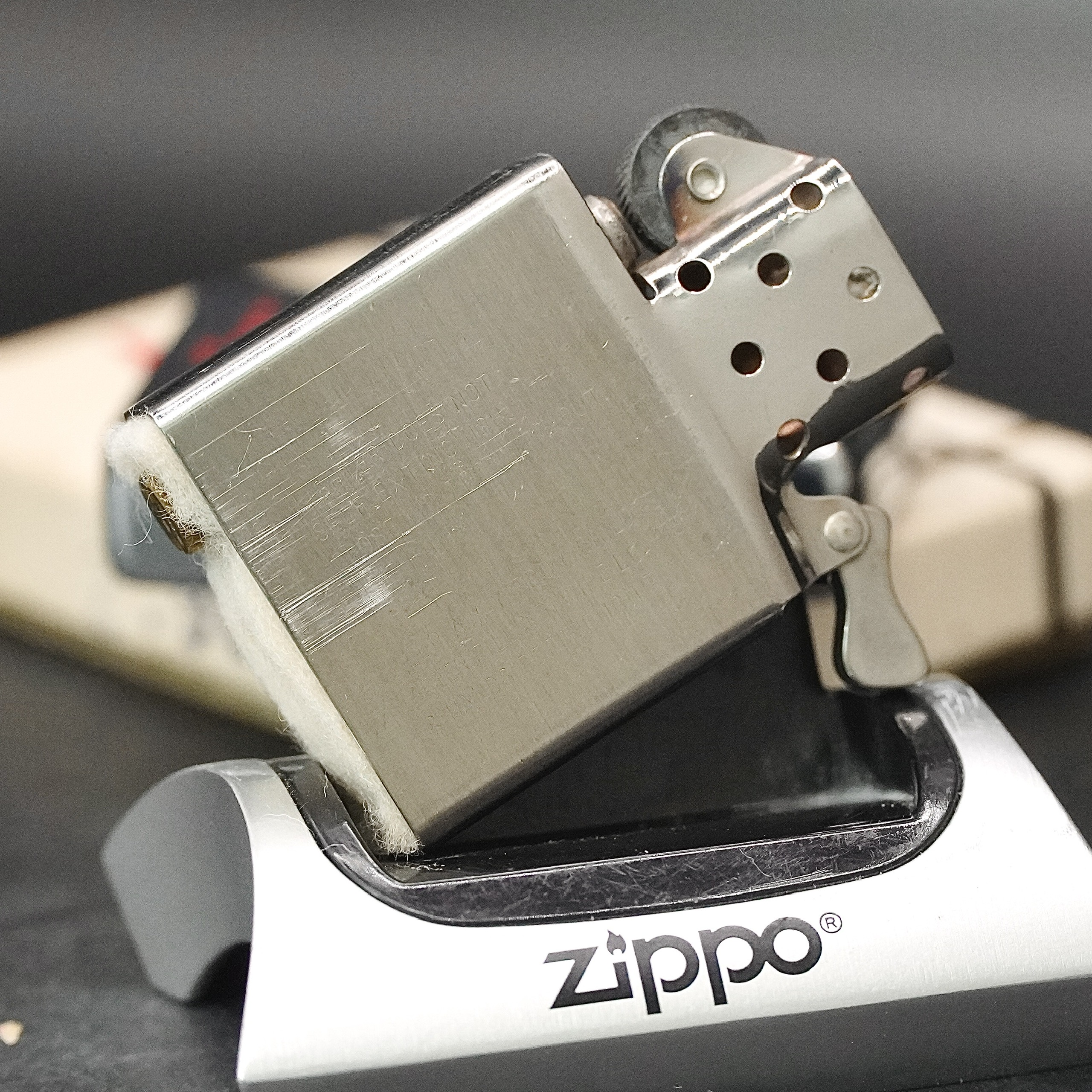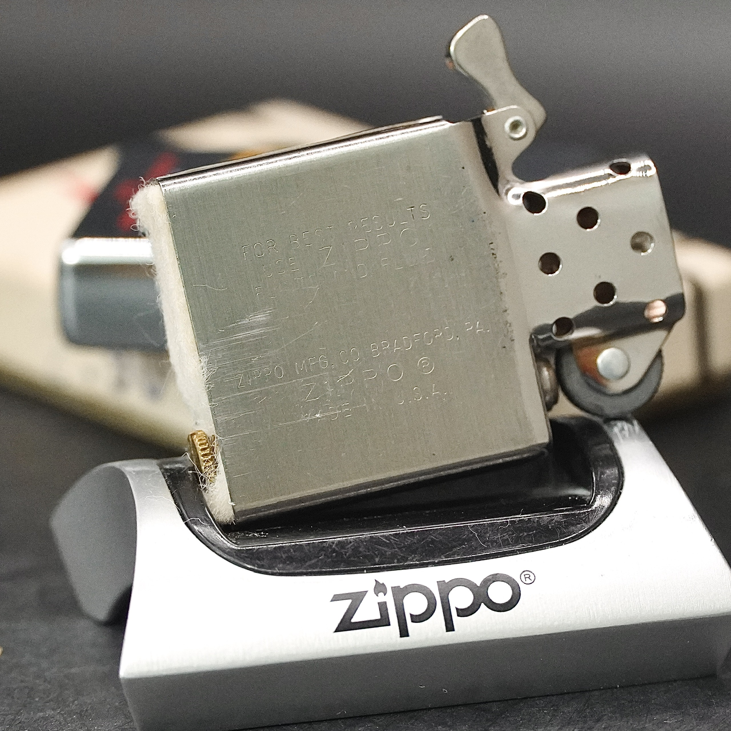 - Thiết kế Zippo nguyên bản , Zippo xưa hoạt động rất tốt. nên sử dụng khăn mềm để lau bề mặt