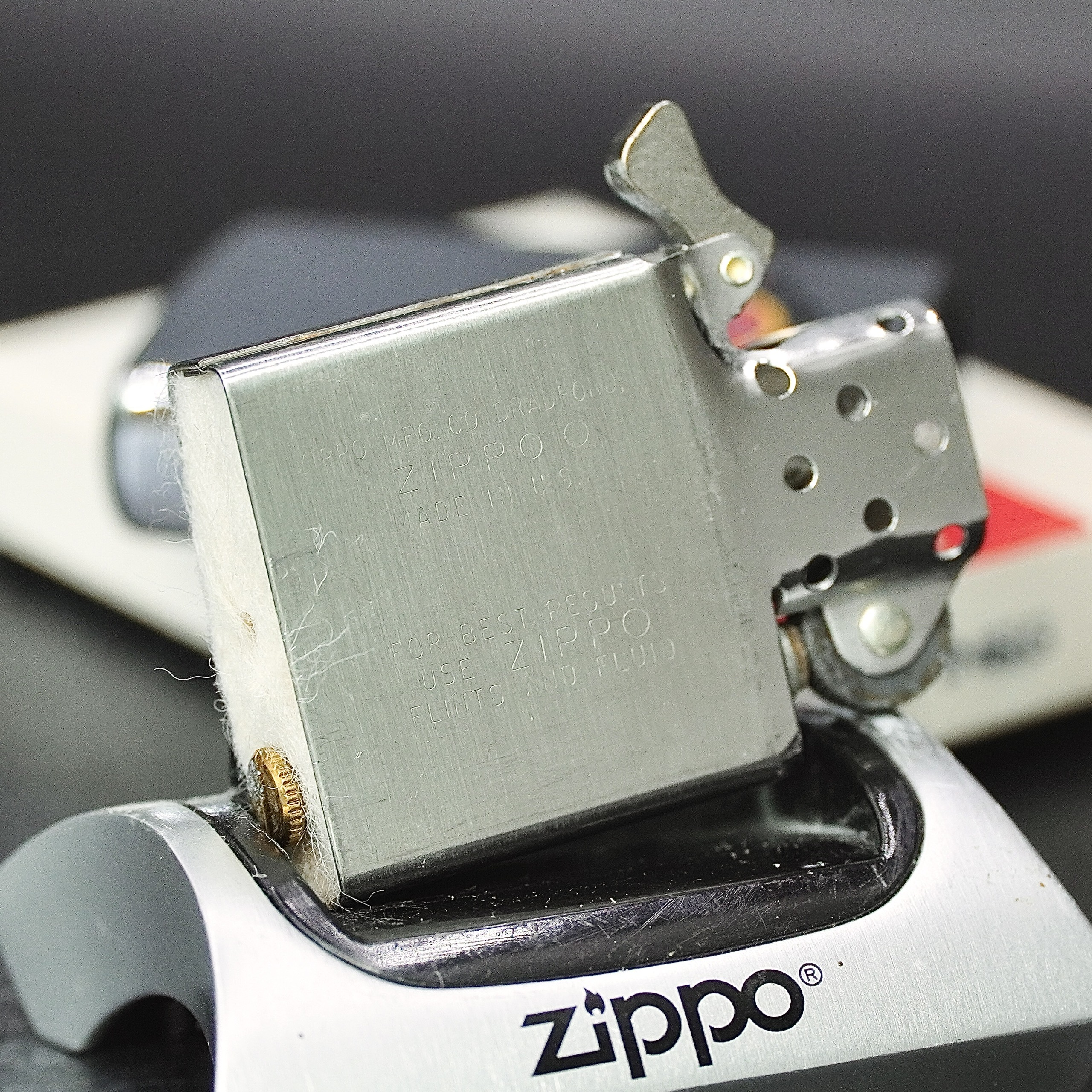 - Thiết kế Zippo nguyên bản , Zippo xưa hoạt động rất tốt. nên sử dụng khăn mềm để lau bề mặt