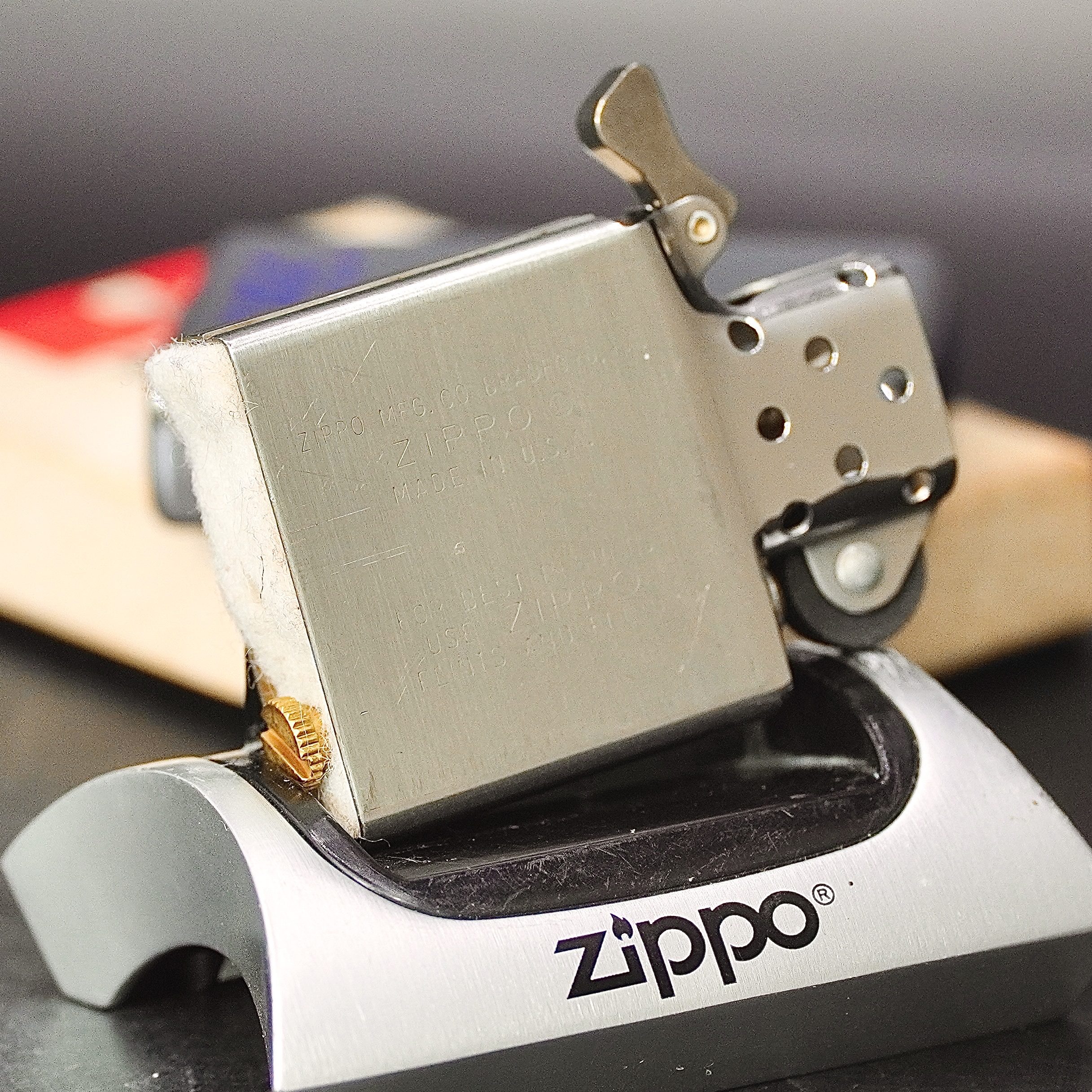 - Thiết kế Zippo nguyên bản , Zippo xưa hoạt động rất tốt. nên sử dụng khăn mềm để lau bề mặt