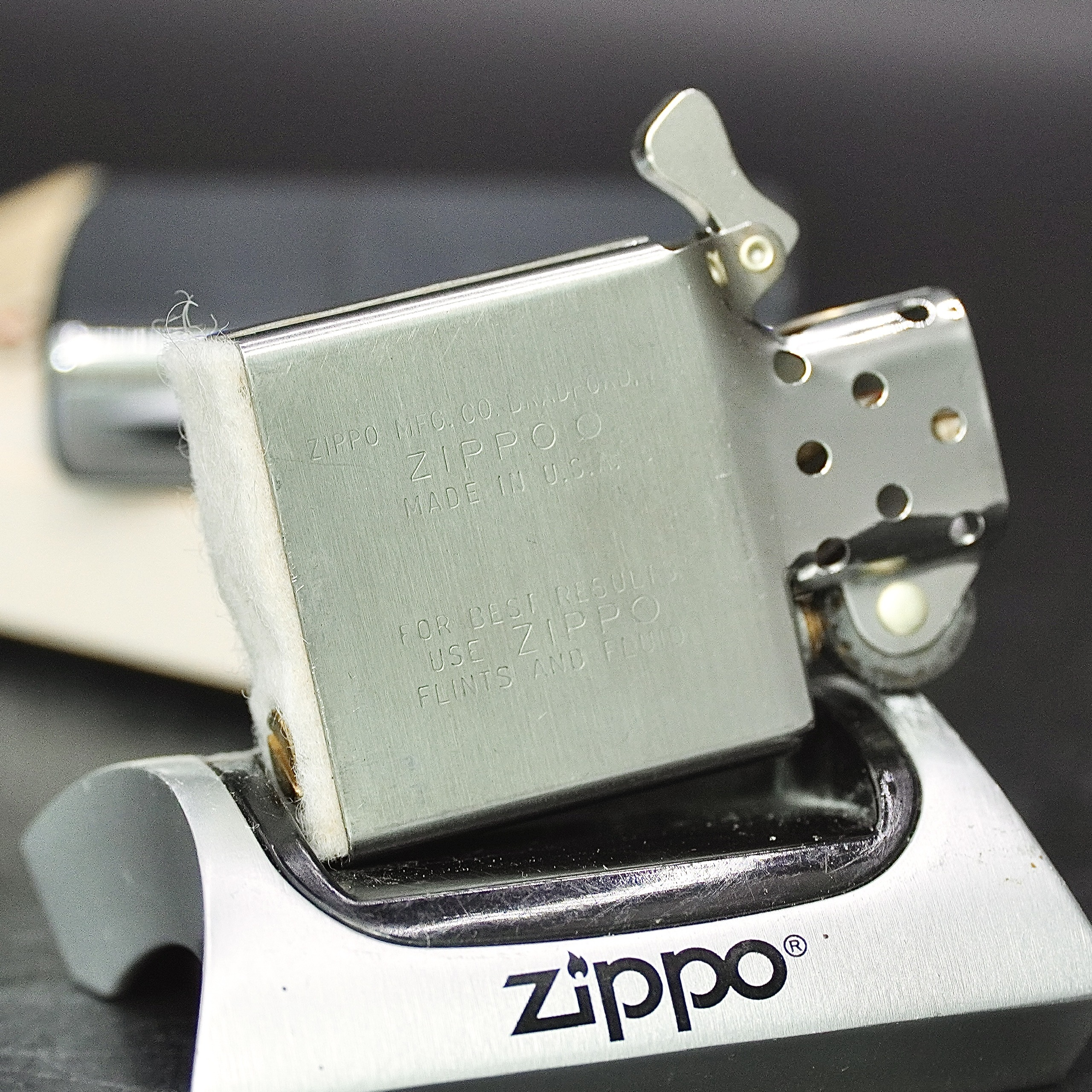 - Thiết kế Zippo nguyên bản , Zippo xưa hoạt động rất tốt. nên sử dụng khăn mềm để lau bề mặt