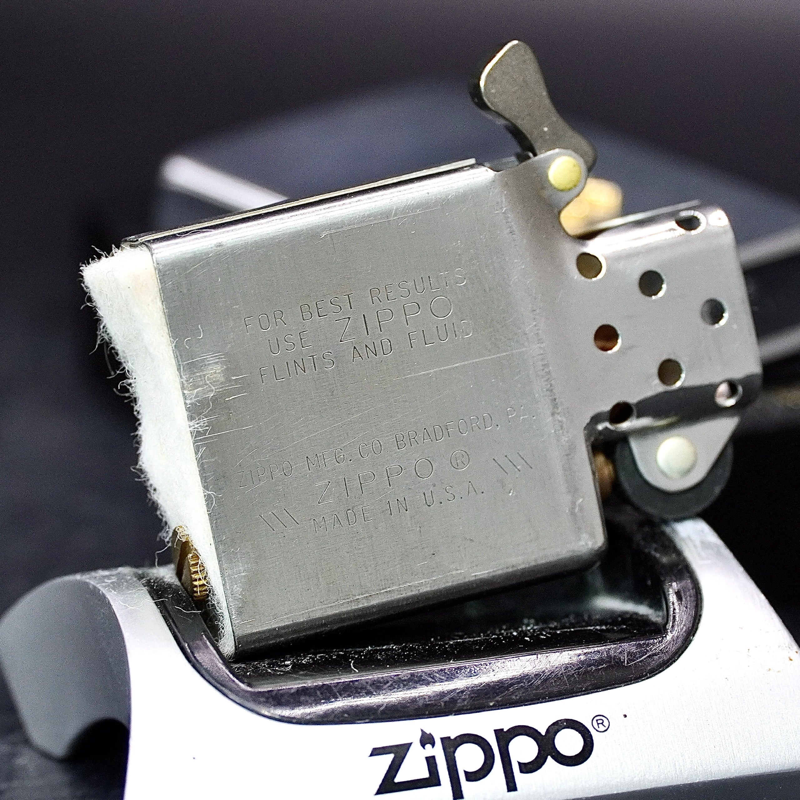 - Thiết kế Zippo nguyên bản , Zippo xưa hoạt động rất tốt. nên sử dụng khăn mềm để lau bề mặt