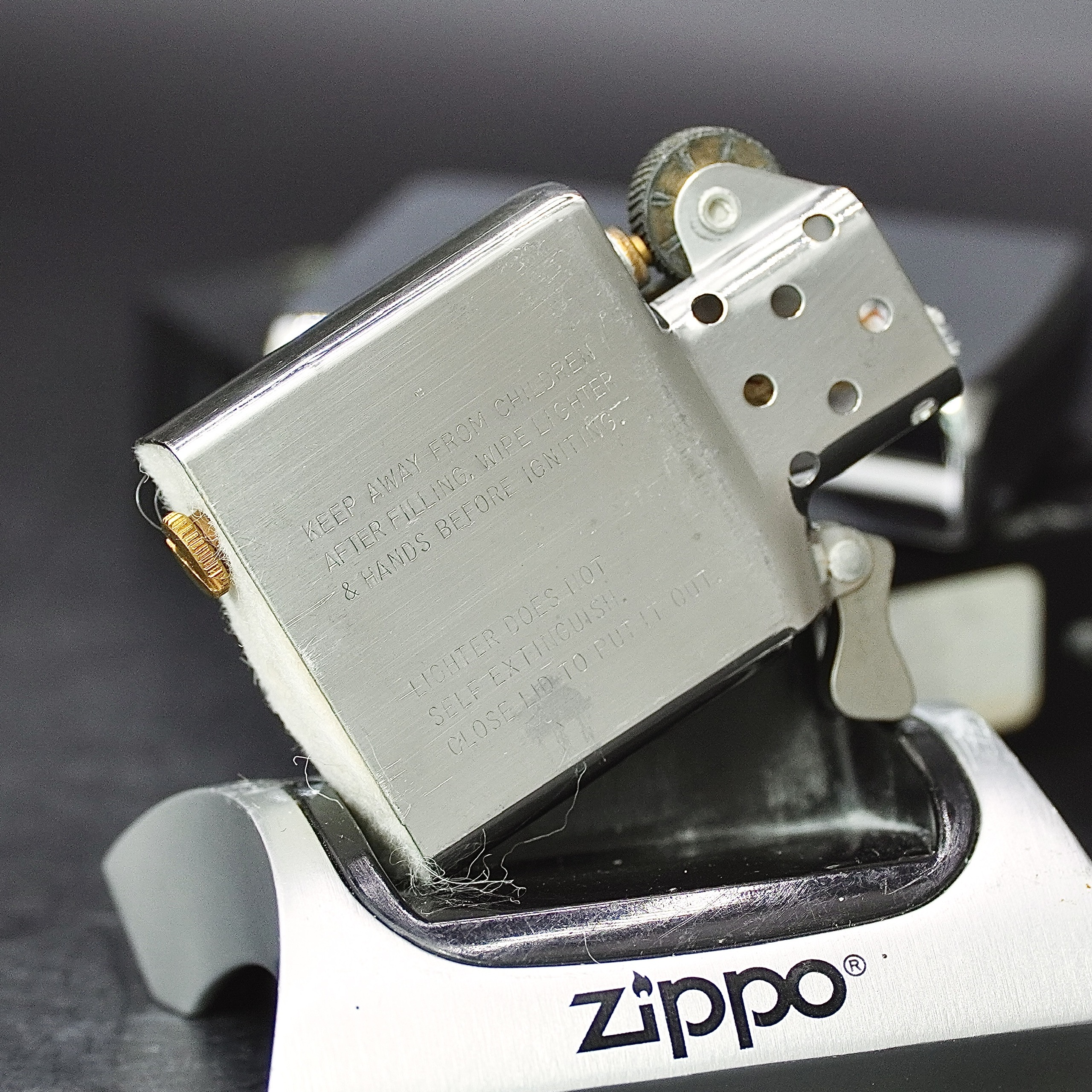- Thiết kế Zippo nguyên bản , Zippo xưa hoạt động rất tốt. nên sử dụng khăn mềm để lau bề mặt