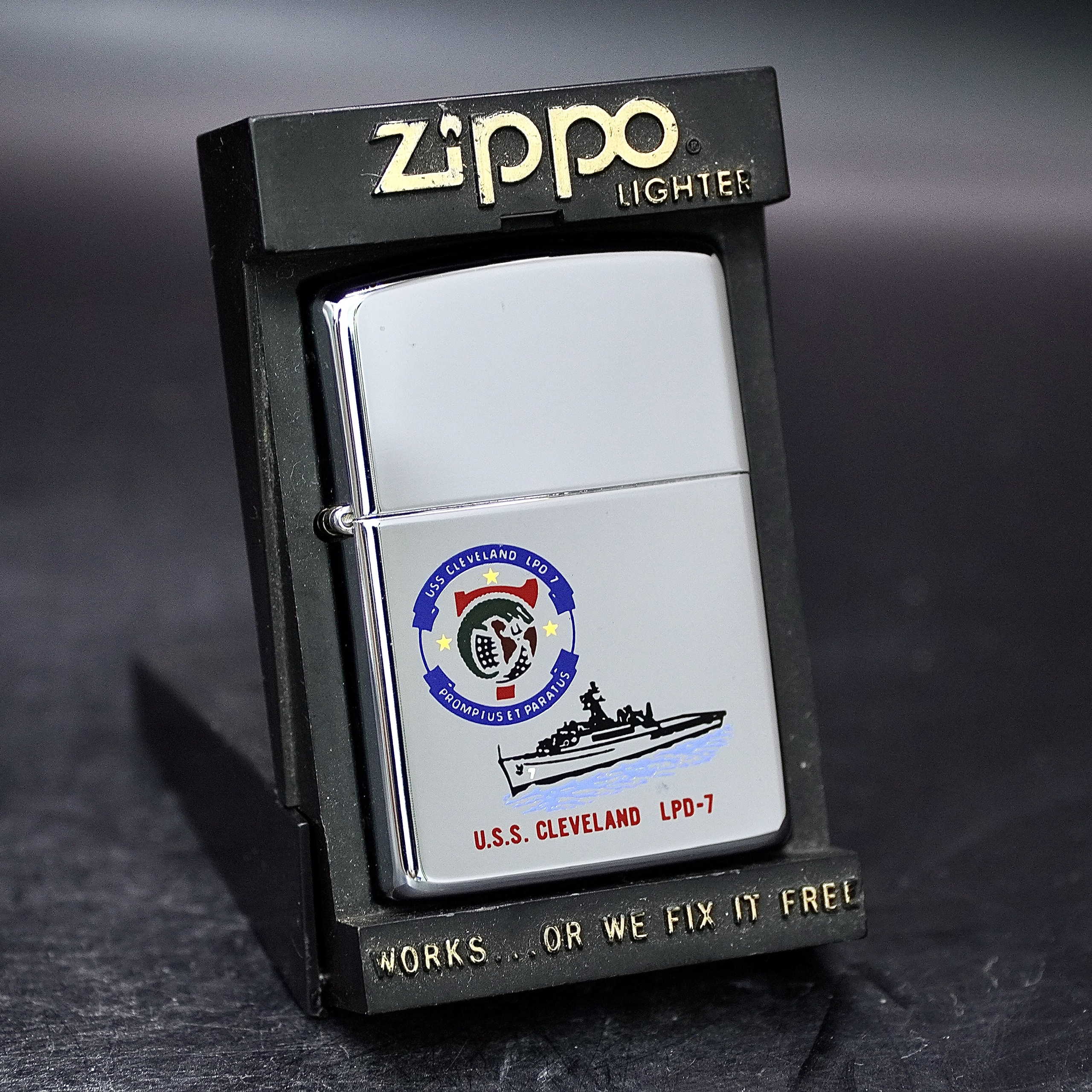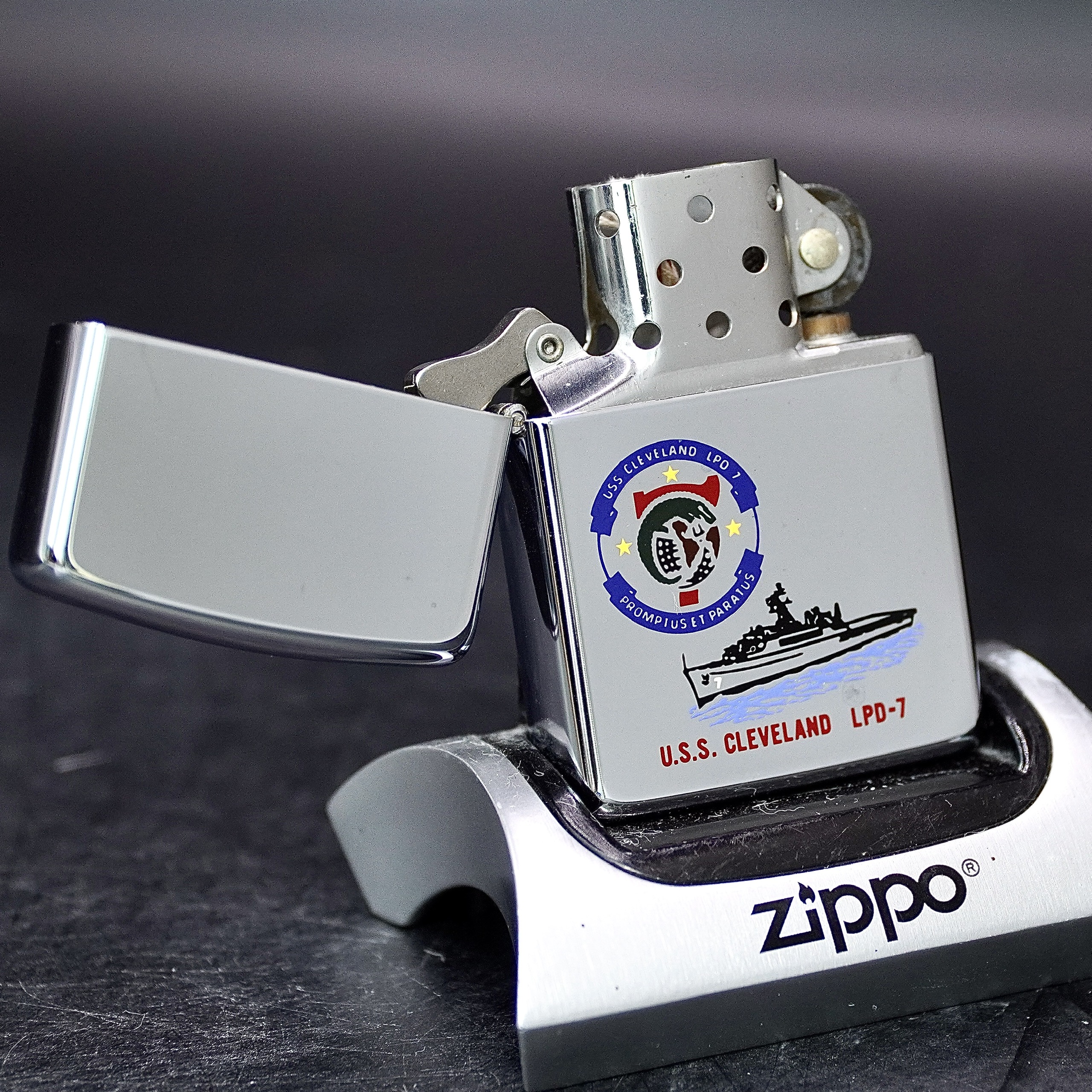 ZIPPO XƯA 1989 - HÀNG XƯA THẬP NIÊN 80s _ CHỦ ĐỀ TÀU CHIẾN CLEVERLAND LPD-7