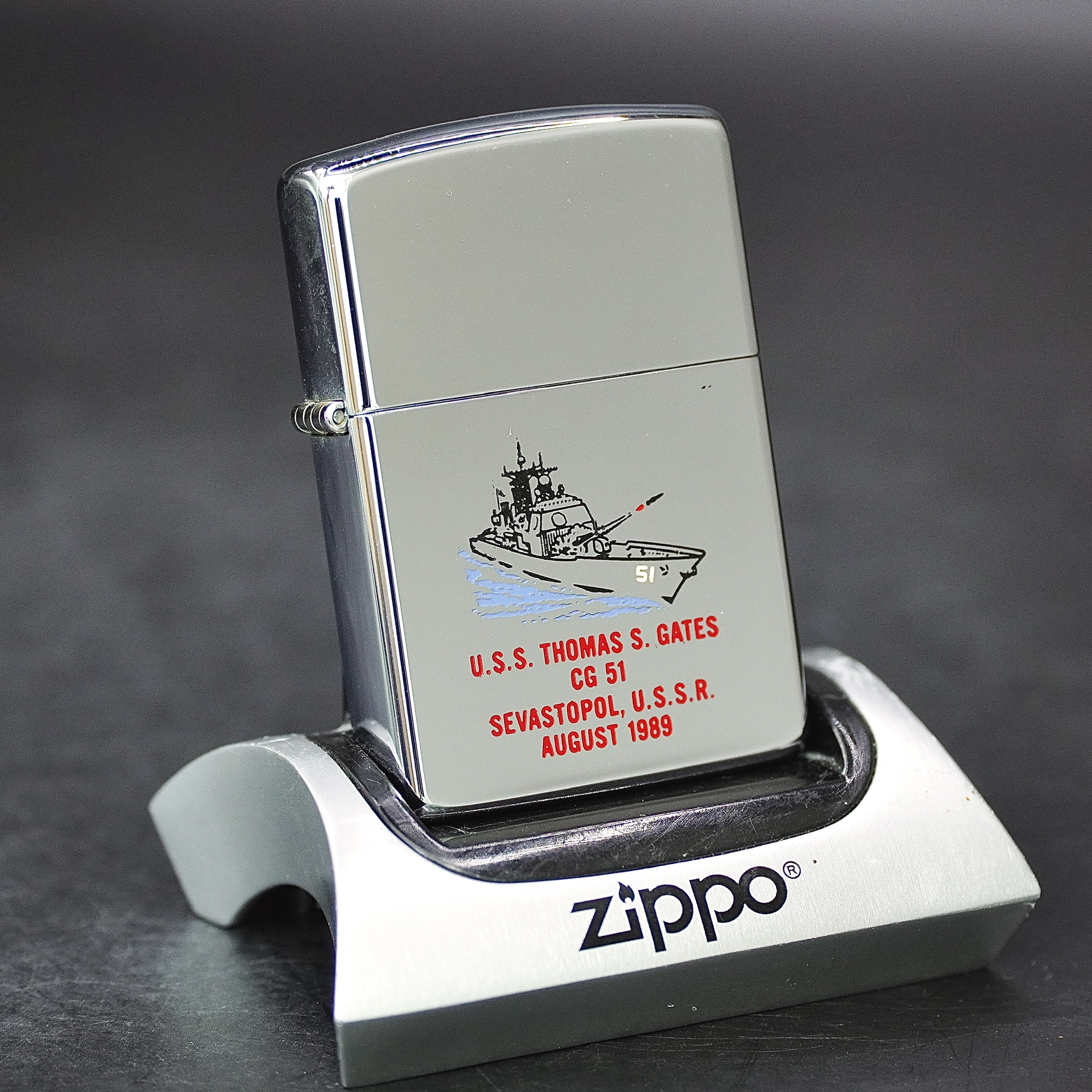ZIPPO XƯA 1989 - HÀNG XƯA THẬP NIÊN 80s _ CHỦ ĐỀ TÀU CHIẾN THOMAS S. GATES CG 51