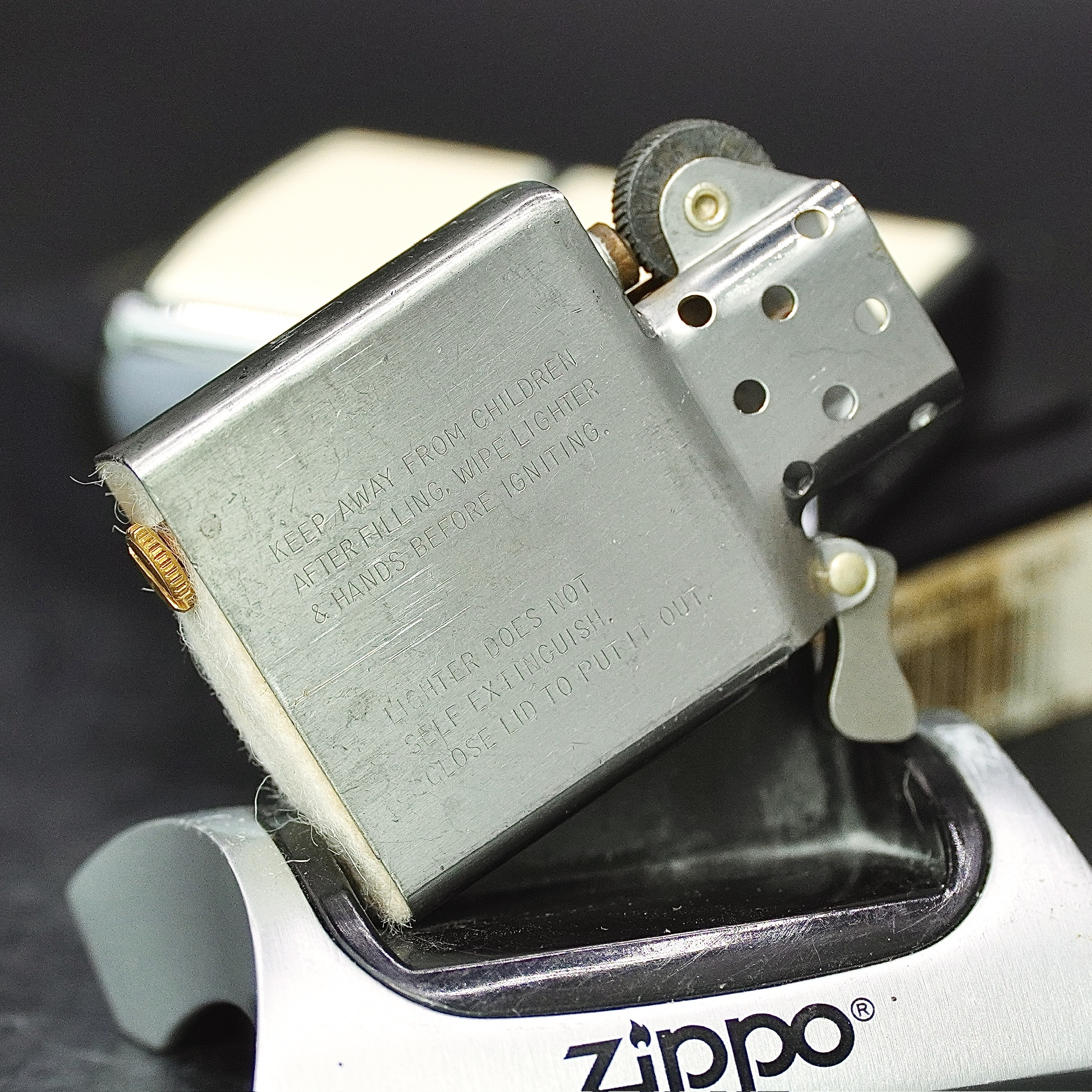 - Thiết kế Zippo nguyên bản , Zippo xưa hoạt động rất tốt. nên sử dụng khăn mềm để lau bề mặt