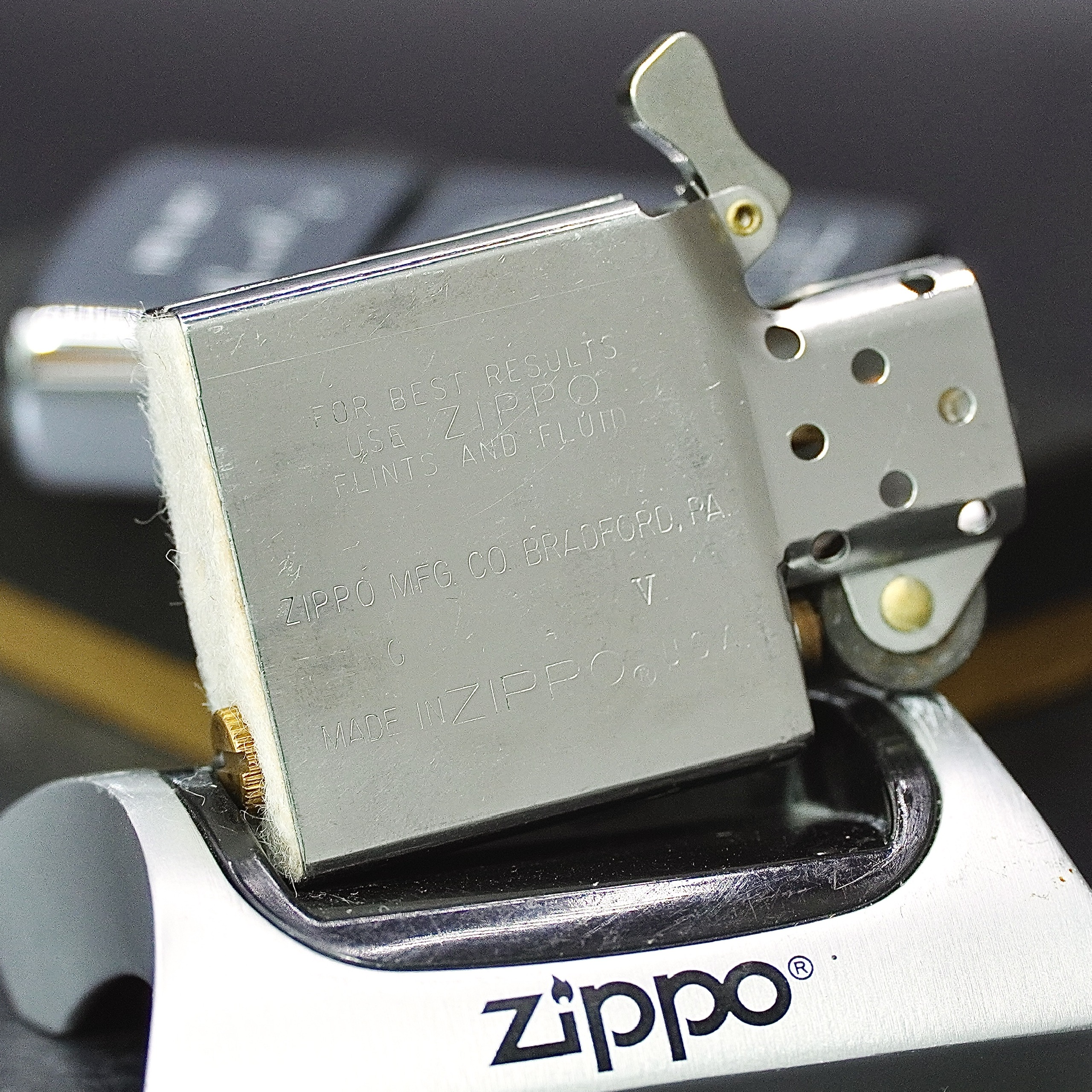 - Thiết kế Zippo nguyên bản , Zippo xưa hoạt động rất tốt. nên sử dụng khăn mềm để lau bề mặt
