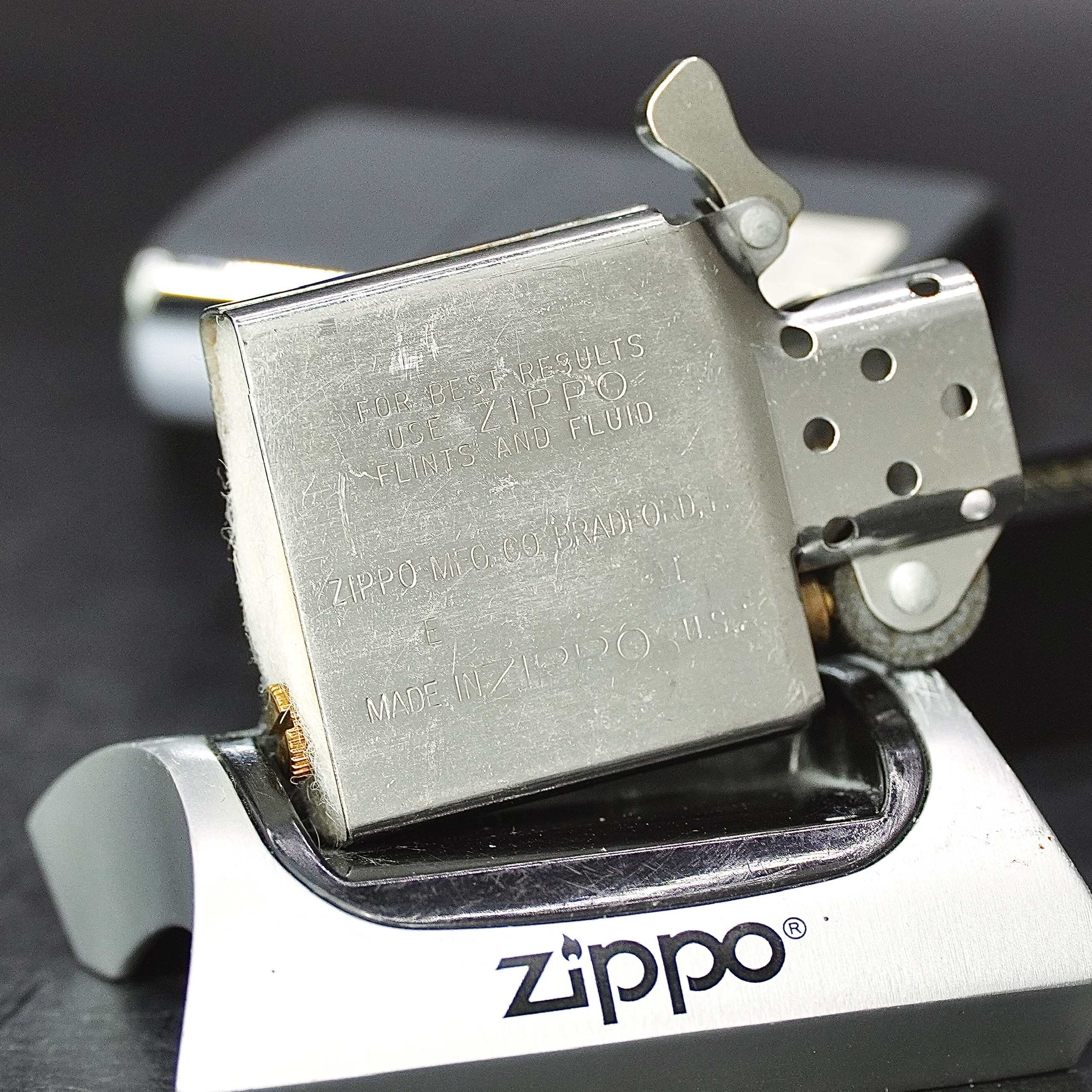 - Thiết kế Zippo nguyên bản , Zippo xưa hoạt động rất tốt. nên sử dụng khăn mềm để lau bề mặt