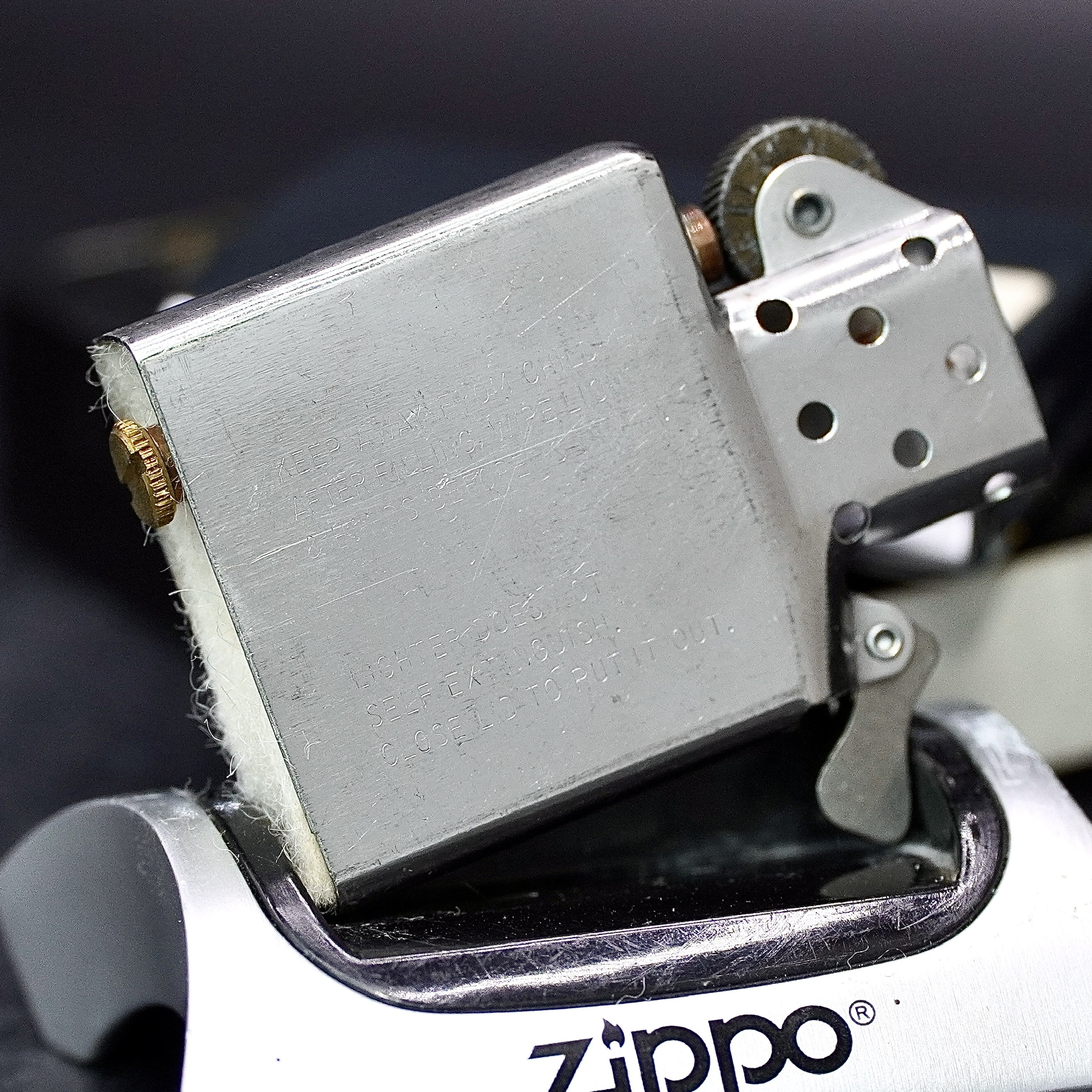 - Thiết kế Zippo nguyên bản , Zippo xưa hoạt động rất tốt. nên sử dụng khăn mềm để lau bề mặt