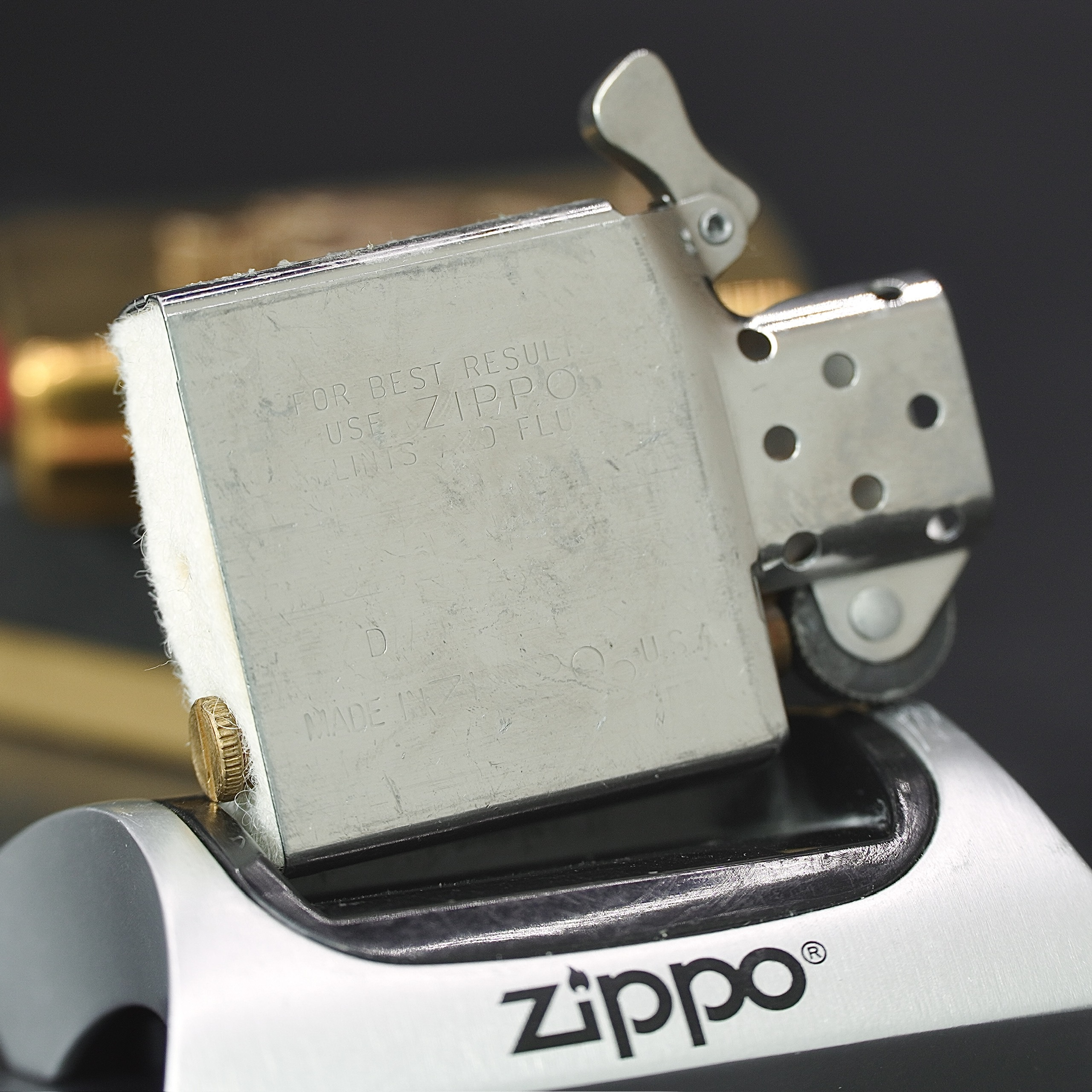 - Thiết kế Zippo nguyên bản , Zippo xưa hoạt động rất tốt. nên sử dụng khăn mềm để lau bề mặt