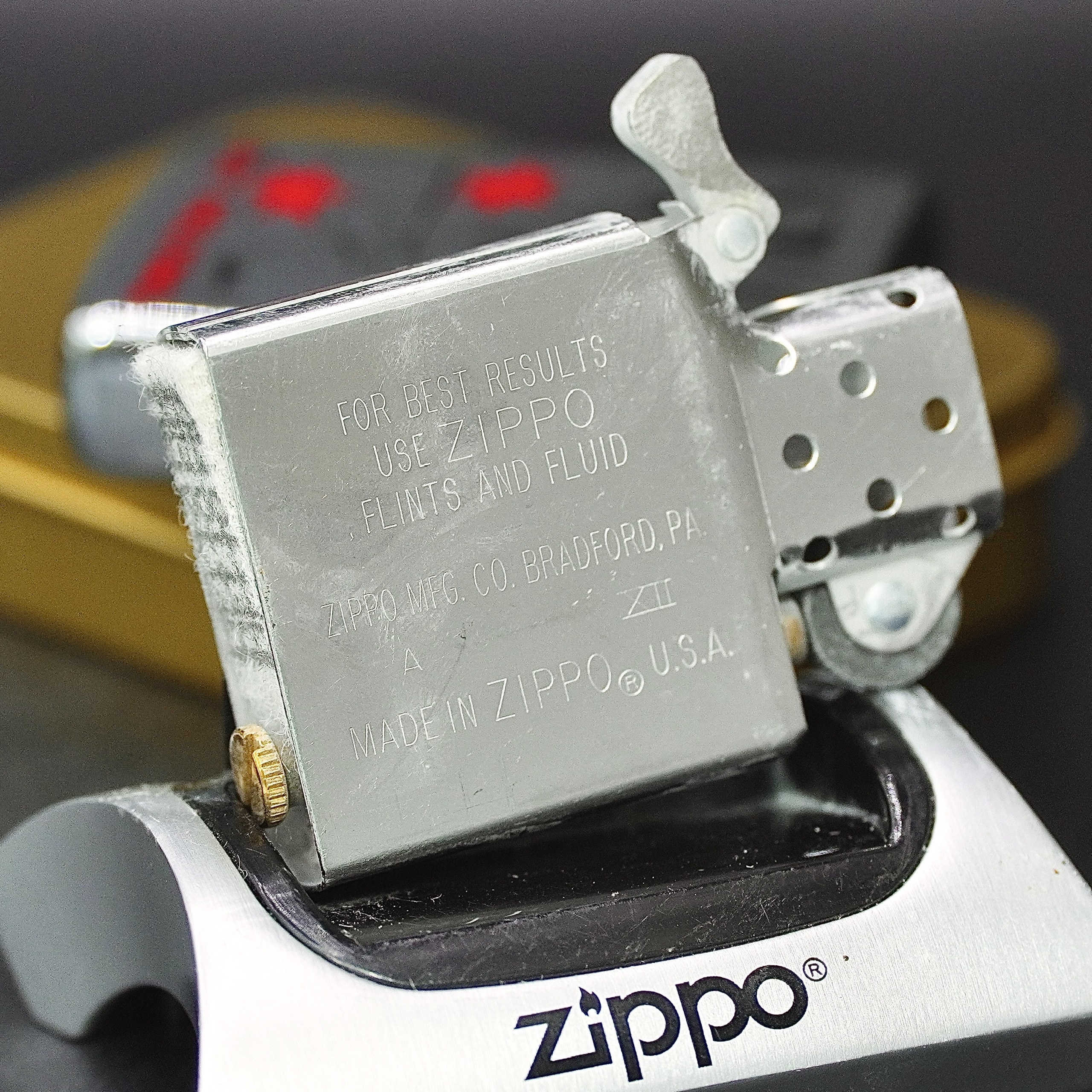 - Thiết kế Zippo nguyên bản , Zippo xưa hoạt động rất tốt. nên sử dụng khăn mềm để lau bề mặt