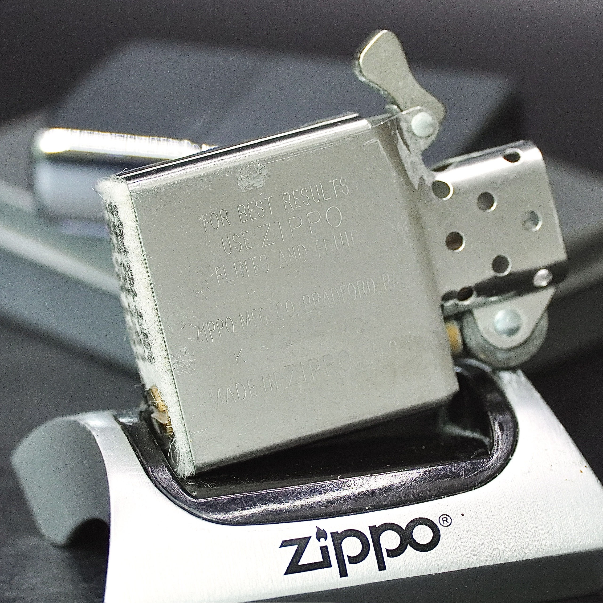 - Thiết kế Zippo nguyên bản , Zippo xưa hoạt động rất tốt. nên sử dụng khăn mềm để lau bề mặt