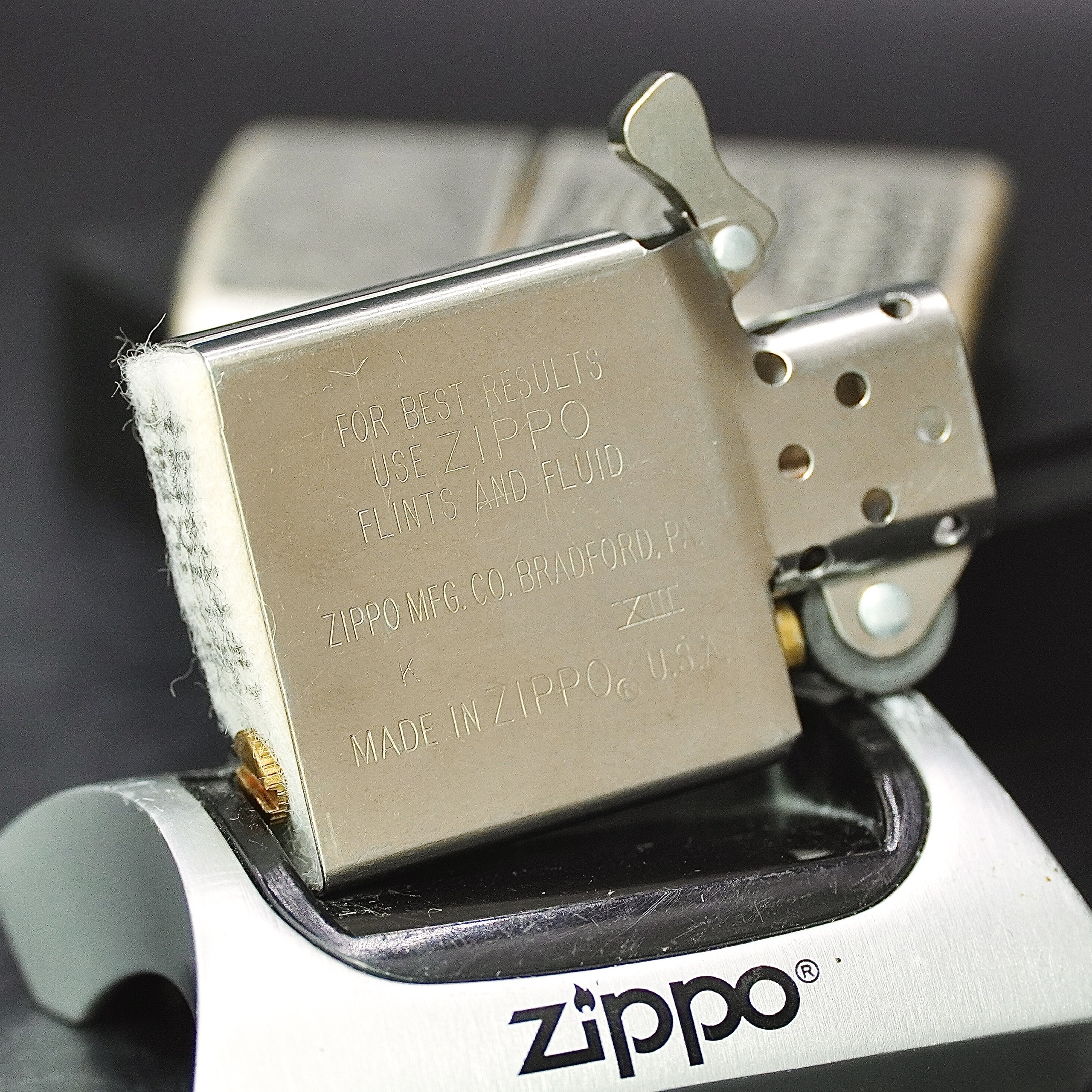 - Thiết kế Zippo nguyên bản , Zippo xưa hoạt động rất tốt. nên sử dụng khăn mềm để lau bề mặt