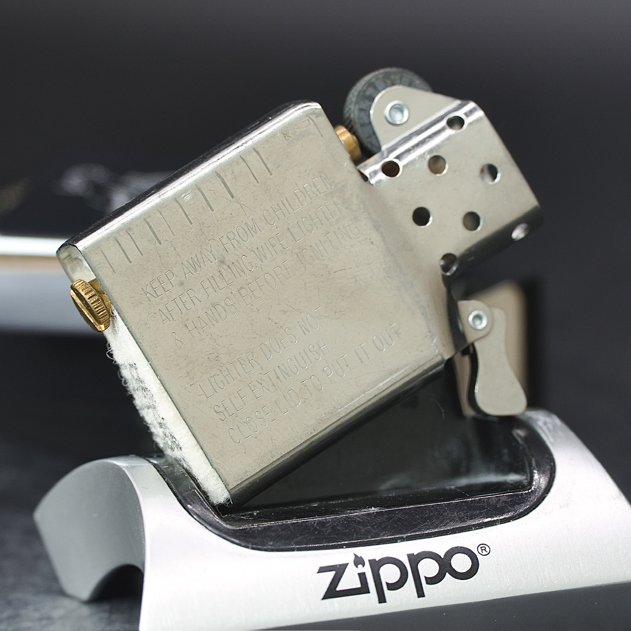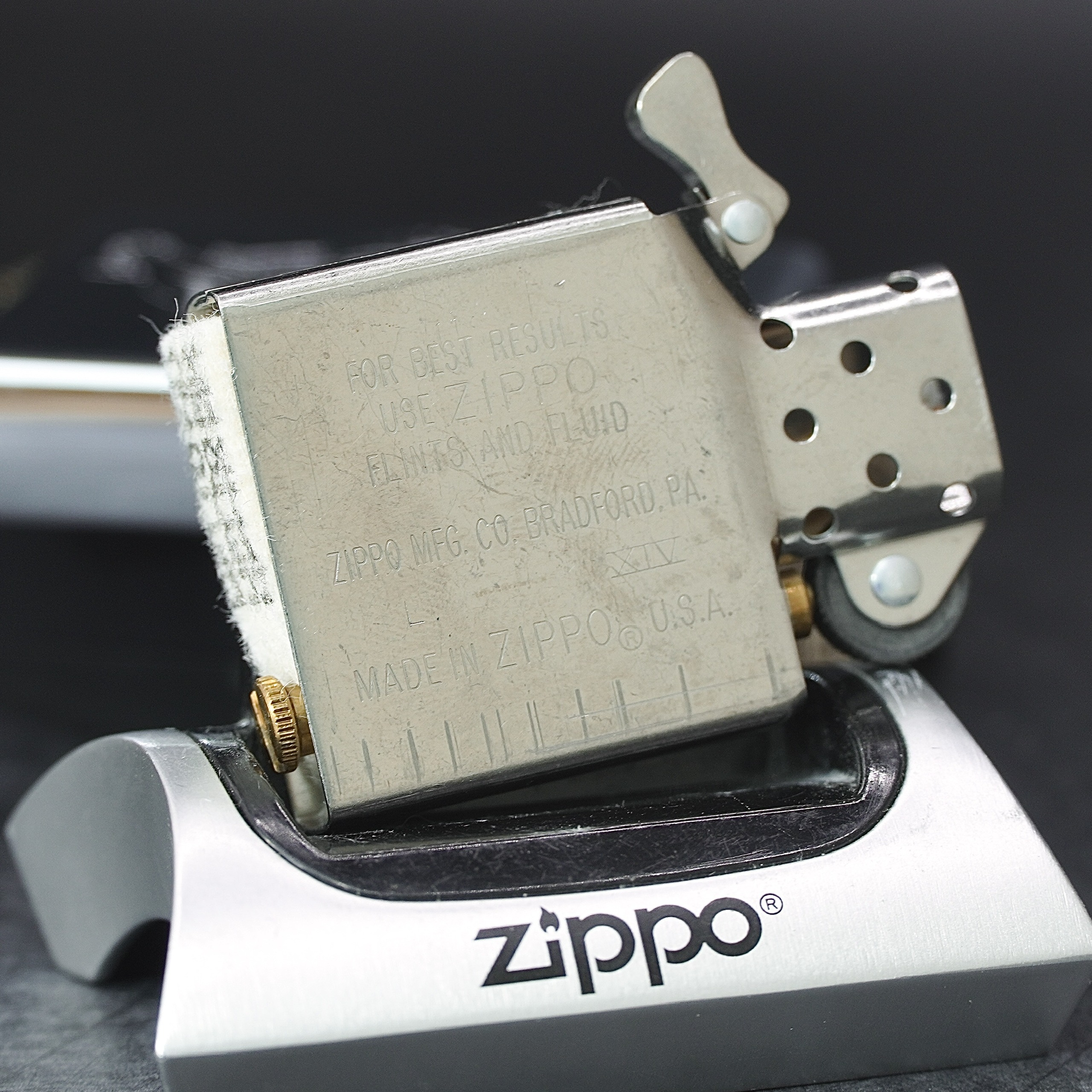 - Thiết kế Zippo nguyên bản , Zippo xưa hoạt động rất tốt. nên sử dụng khăn mềm để lau bề mặt