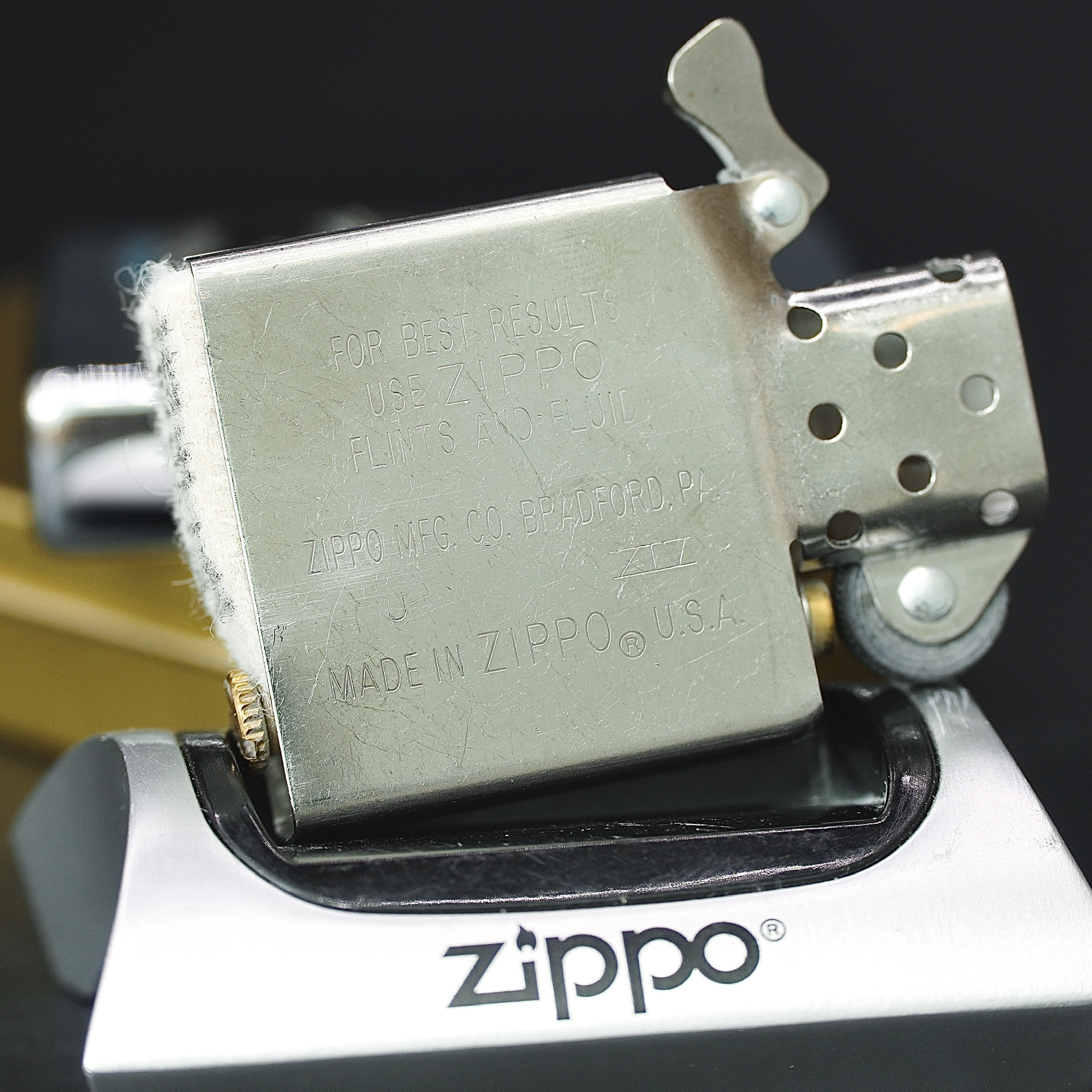 - Thiết kế Zippo nguyên bản, Zippo xưa hoạt động rất tốt. nên sử dụng khăn mềm để lau bề mặt