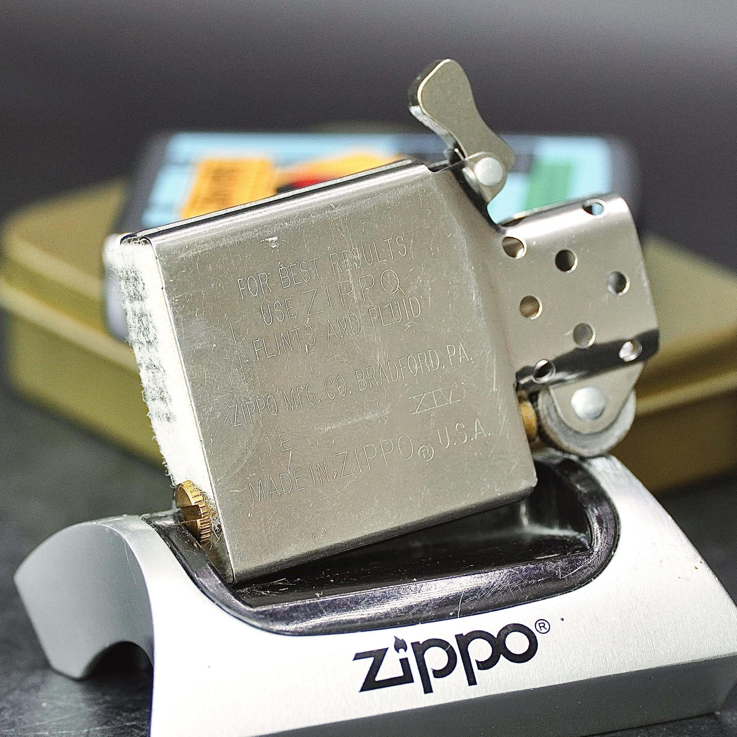 - Thiết kế Zippo nguyên bản , Zippo xưa hoạt động rất tốt. nên sử dụng khăn mềm để lau bề mặt