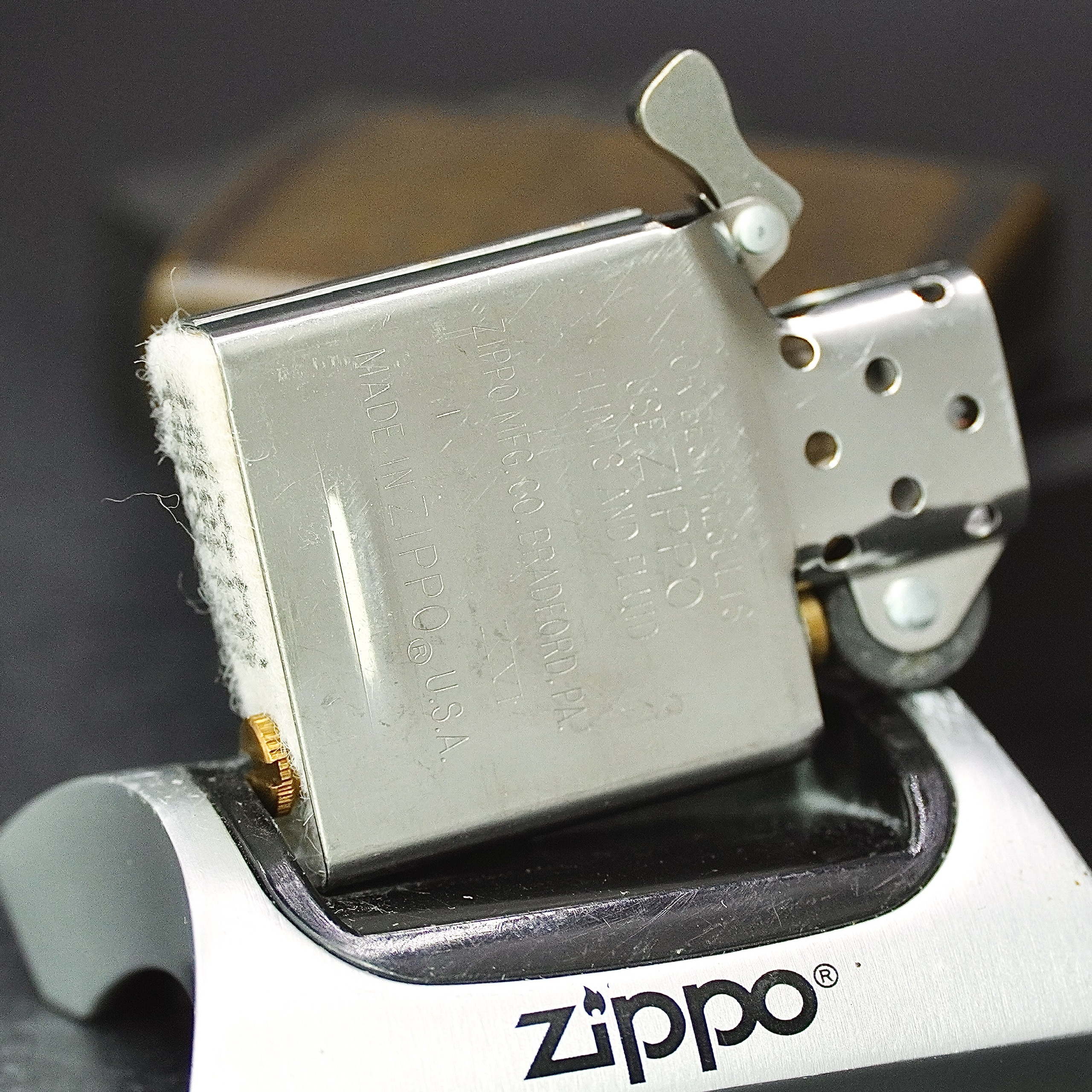 - Thiết kế Zippo nguyên bản , Zippo xưa hoạt động rất tốt. nên sử dụng khăn mềm để lau bề mặt