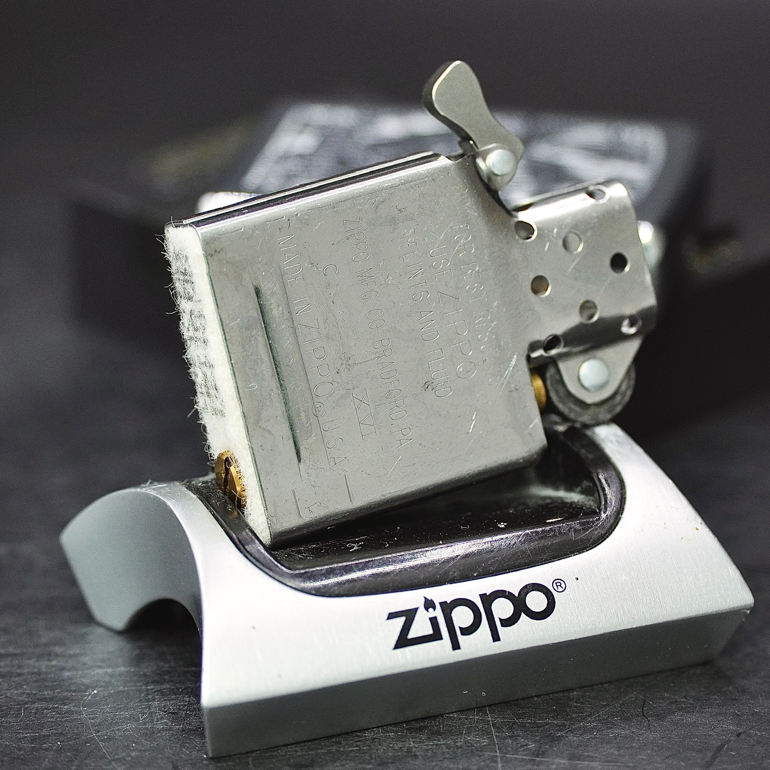 - Thiết kế Zippo nguyên bản , Zippo xưa hoạt động rất tốt. nên sử dụng khăn mềm để lau bề mặt